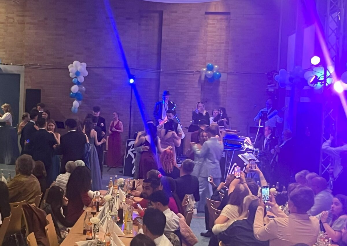 Für das leibliche Wohl sorgte ein Food-Truck, an dem Burger, Spare-Ribs oder Schaschlik-Pfännchen geordert werden konnten. In Ruhe konnten diese dann in der Aula der Schule verzehrt werden, die mit Stehtischen und passender Dekoration ebenfalls festlich hergerichtet worden war.