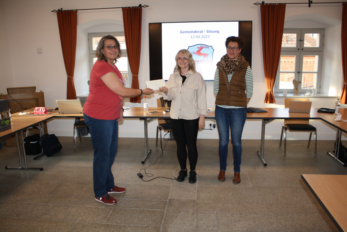 Freuen durfte sich der „Storchennest“-Elternbeirat: Aus dem Erlös des Verkaufs von Inventar des alten Kindergartens nahmen die Beiratsmitglieder Kerstin Hörl und Elisabeth Merker von Bürgermeisterin Carmen Pepiuk eine 1.500-Euro-Spende für die Einrichtung des Turnraums im Kindergartenneubau entgegen.