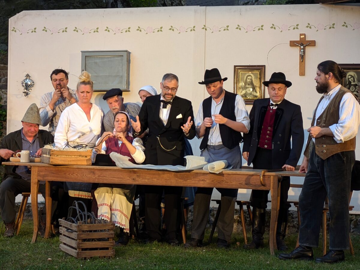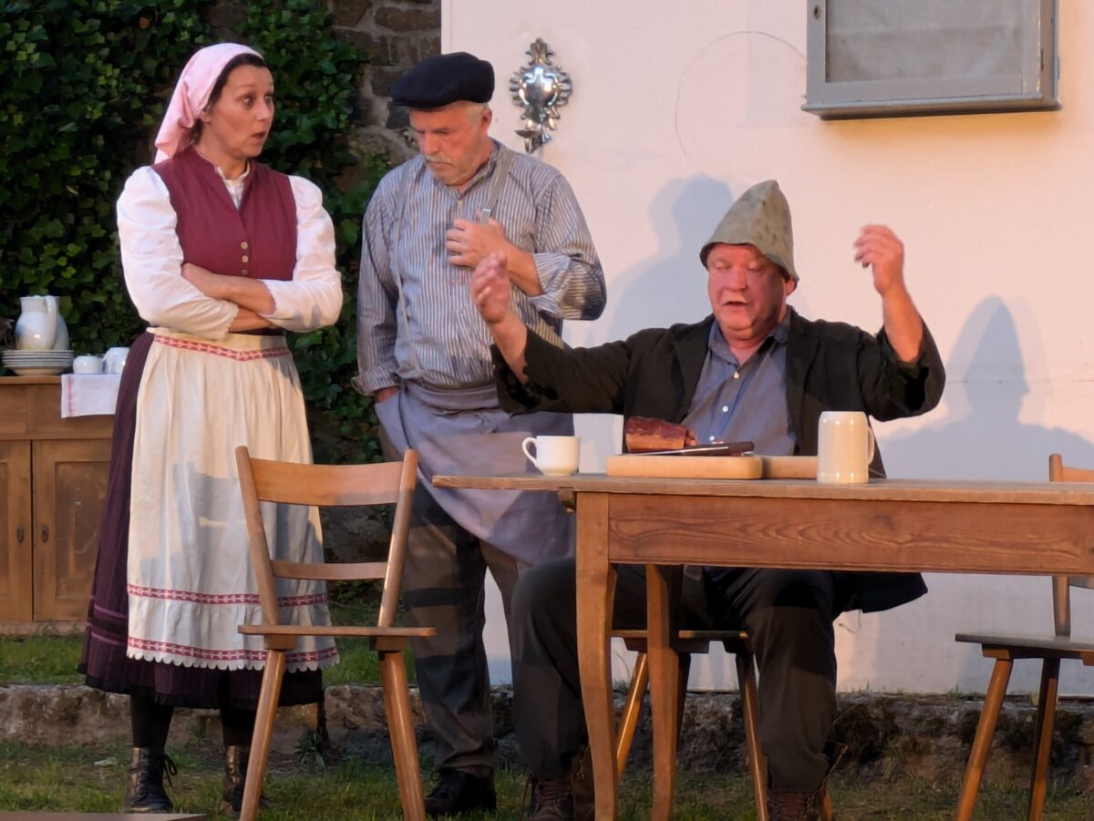 Die Laienspielschar Windischeschenbach landete mit ihrem neuen Stück „s Elädrische“ erneut einen Volltreffer. Wegen Erkrankung einer Hauptdarstellerin wurden die Termine des neuen Bühnenstücks „s Elädrische“ der Laienspielschar Windischeschenbach auf der Naturbühne Burg Neuhaus kurzfristig verschoben. Am Donnerstag, 18. Juli und Freitag, 19. Juli wurden diese aber eindrucksvoll nachgeholt. Das Ensemble unter der Regie von Renate Schönberger und Kerstin Schandri, die selber als Vorreitnerin, Altbäuerin und Magd Vroni im Volksstück mitwirkten, lief zur Hochform auf. Seit der Hofübergabe geriet am Vorreitner Hof so einiges aus den Fugen.