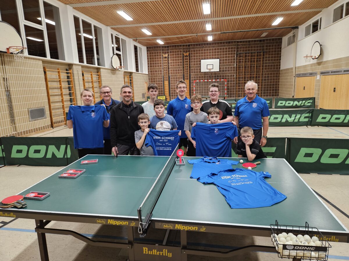 Der offizielle Übergabetermin wurde zu einem festlichen Ereignis, bei dem die Freude über die erfüllten Wünsche groß war. Abteilungsleiter Alfred Arnold und die Jugendlichen des Tischtennisteams strahlten um die Wette, dank der neuen, in strahlendem Blau gehaltenen Trikots. Vorstand Klaus Nigg nutzte die Gelegenheit, um allen Beteiligten, insbesondere Günther Schmidt und Anja Schaller, für ihre Unterstützung und Verbundenheit zum TV Vohenstrauß zu danken. Ein spezieller Dank ging auch an Manuela Völkl, die Geschäftsstellenleiterin, welche die Koordination der Aktion übernommen hatte.