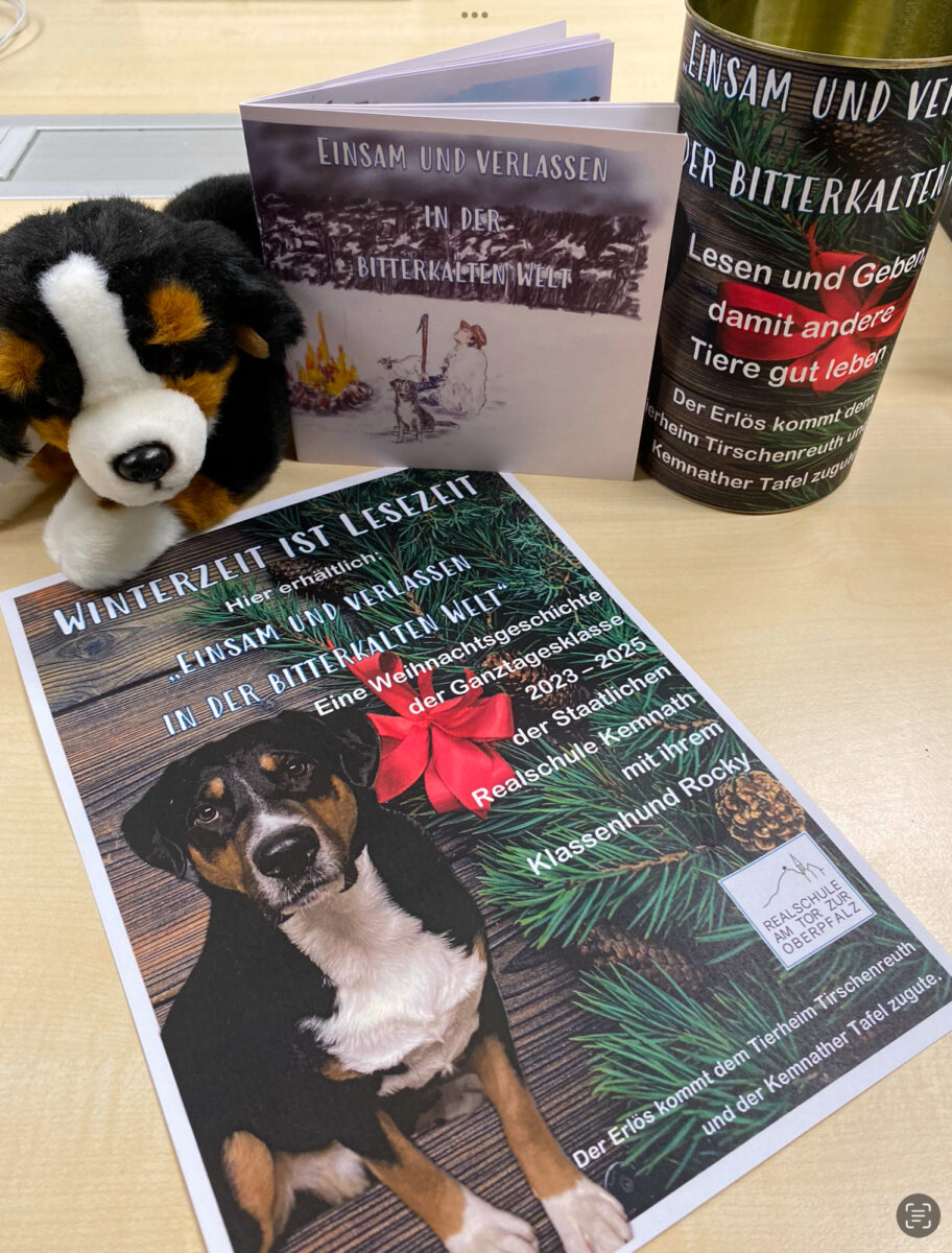 Wie die Geschichte von dem lieben Kerlchen weitergeht, haben die Kinder der Ganztagesklasse 2023 – 2025 der Staatlichen Realschule Kemnath aufgeschrieben und dazu ein Buch erstellt. Das letztjährige Weihnachtsprojekt war ein Weihnachtsfilm mit ihrem Klassenhund Rocky. Die Kinder stellten ihre Kreativität und Medienkompetenz unter Beweis, indem sie eine Geschichte schrieben, ein Schauspiel entwarfen und mit ihren iPads filmten, schnitten sowie mit Musik und Text unterlegten. Dieser Clip bildete in diesem Jahr die Grundlage für eine Weihnachtsgeschichte auf Papier.
