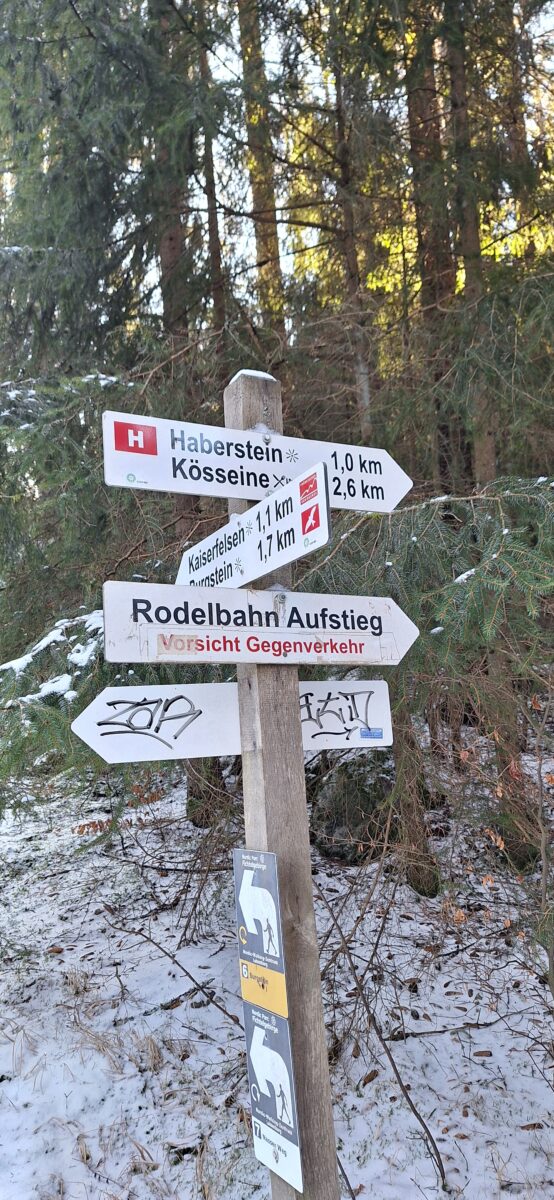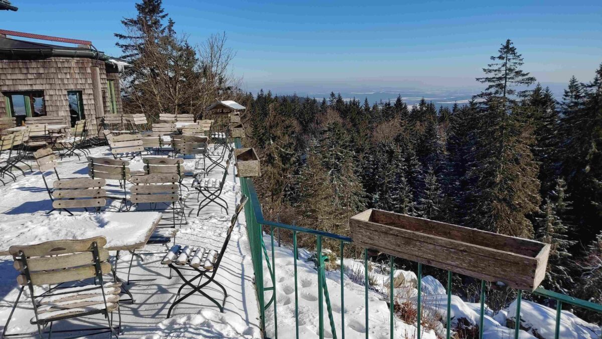 Der Weg dorthin bot viele beeindruckende Ausblicke. Vor allem der kleine Haberstein wurde für eine erste Rast genutzt. Bei einer einstündigen Pause genossen die Teilnehmerinnen und Teilnehmer eine leckere Brotzeit und wärmten sich auf, während sie den traumhaften Ausblick über das Fichtelgebirge und den Steinwald bewunderten. Der Rückweg vom Kösseinehaus führte direkt zum Wanderparkplatz Kösseine.
