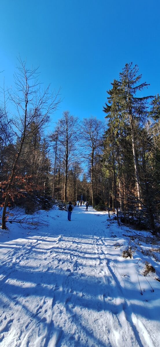 Am frühen Morgen starteten die Klassen 6aG und 7M von dem Busparkplatz an der Luisenburg in ihr Abenteuer. Die Schülerinnen und Schüler machten sich auf den Weg durch die verschneite Landschaft. Der Sonnenschein begleitete die Gruppe und ließ den Schnee glitzern. Ihr Ziel war das Kösseinehaus, welches sie nach weniger als zwei Stunden erreichten.