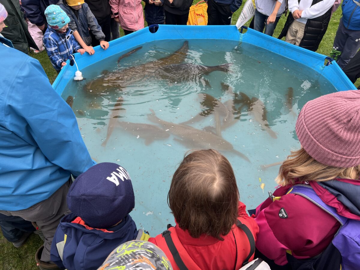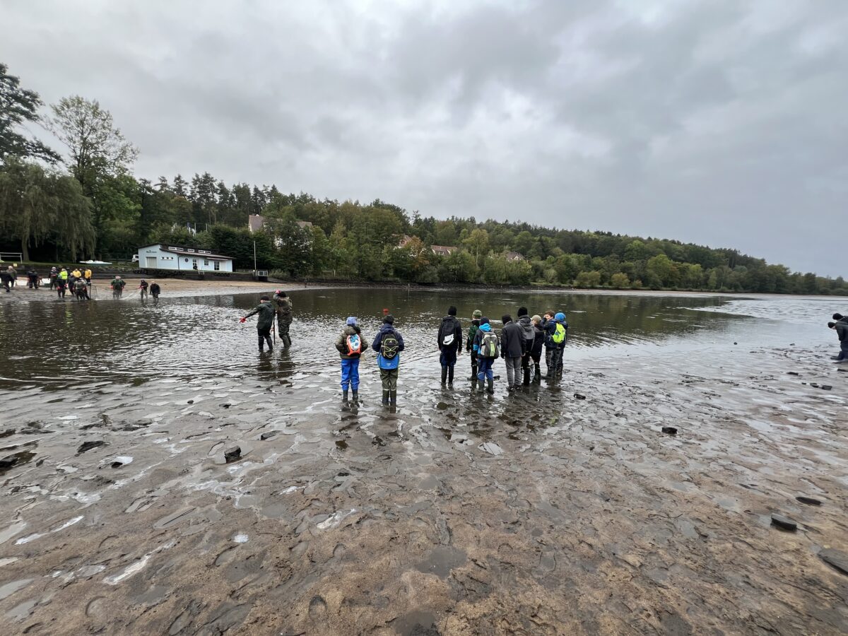 Die Schüler, ausgerüstet mit Gummistiefeln und wetterfester Kleidung, erreichten am Morgen den idyllischen Rußweiher. Das Ereignis bot eine Vielfalt an Lernerfahrungen. Beim Waten im Teichschlamm, wo einige bis zu den Knien im Wasser standen, wurden neben großen Welsen auch Zwergwelse, Hechte, Forellen und verschiedene Futterfische zu Tage gefördert. Der Wels, mit seiner beeindruckenden Größe und schleimigen Haut, erwies sich dabei als das Highlight des Tages für viele Schüler. Die Schüler waren nicht nur von den Fischen fasziniert, sondern entdeckten auch Muscheln und machten eigene Funde im Teichschlamm.