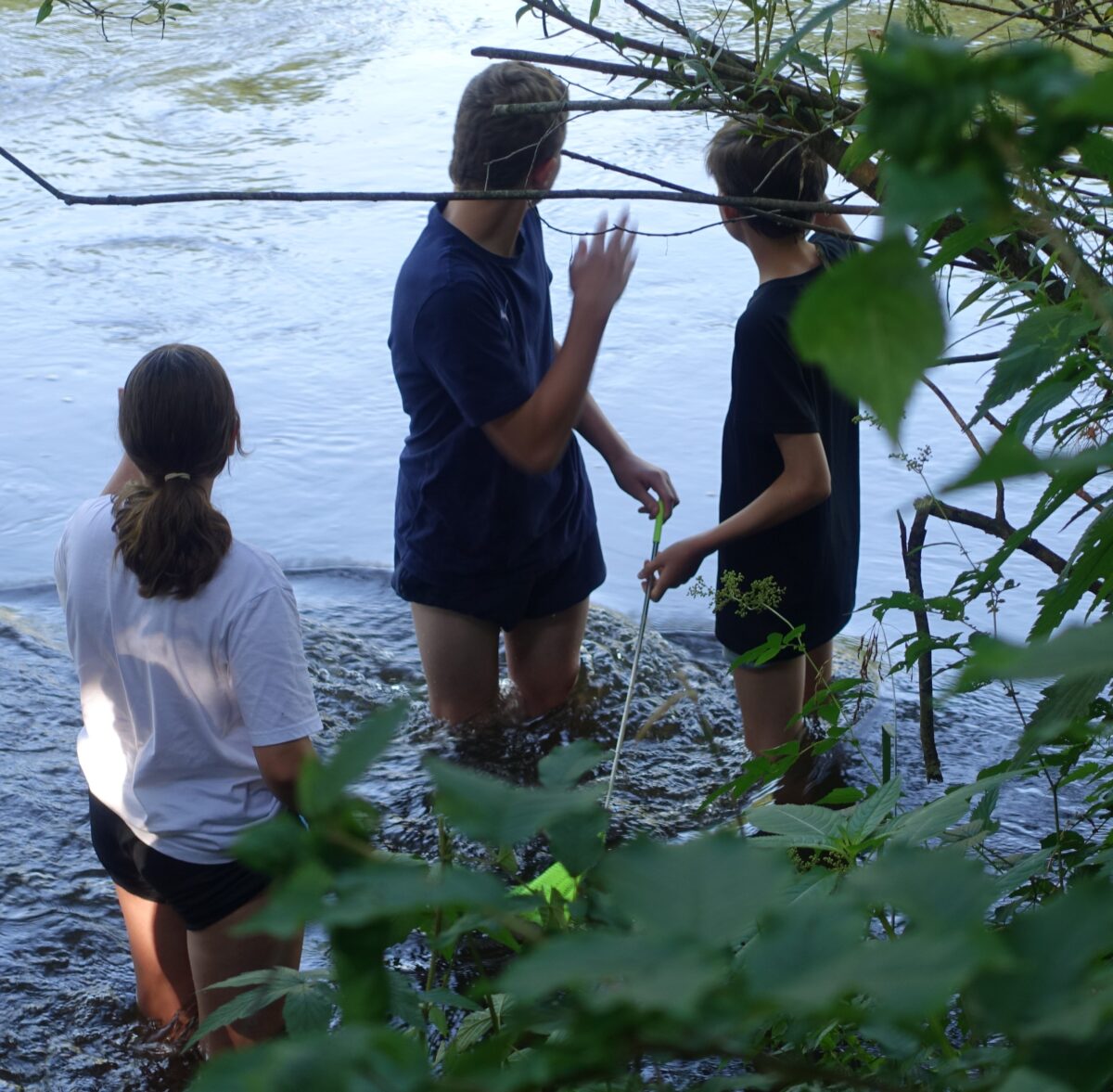 Eine weitere Station bot den Teilnehmern die Möglichkeit, Biologen des Wasserwirtschaftsamtes Weiden zu unterstützen und Wasserorganismen zu fangen. Beim Eintauchen in das kühle Nass der Naab entdeckten sie viele ungewöhnliche tierische Lebewesen wie Flussflohkrebse, Köcherfliegenlarven und Eintagsfliegen. Den Schülerinnen und Schülern wurde die Lebensweise dieser Wassertiere erklärt und welche Rückschlüsse diese auf die Gewässergüte der Naab zulassen.