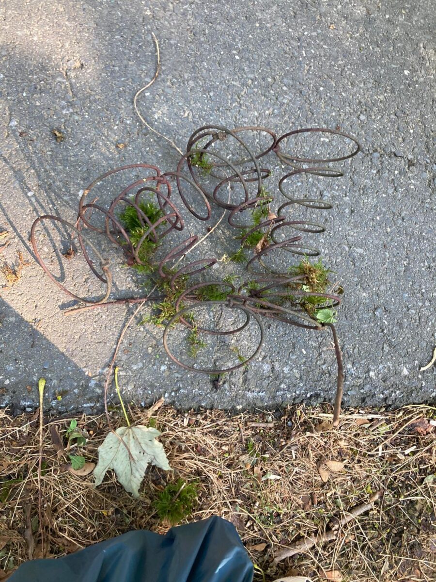 Die Schüler finden zahlreiche Zigarettenkippen. Es sind genau 485 Kippen, die sie aufsammeln. Auch kuriose Funde sind dabei. So entdecken sie ein Fernglas, eine Schuhsohle und Sprungfedern eines alten Bettes. Glasflaschen sind ebenfalls unter dem gesammelten Müll. Neben dem Müll entdecken die Schüler auch Spuren von Wildschweinen. Zudem finden sie den Abdruck einer Wolfspfote im Acker, die von der begleitenden Lehrkraft fachkundig erläutert wird.