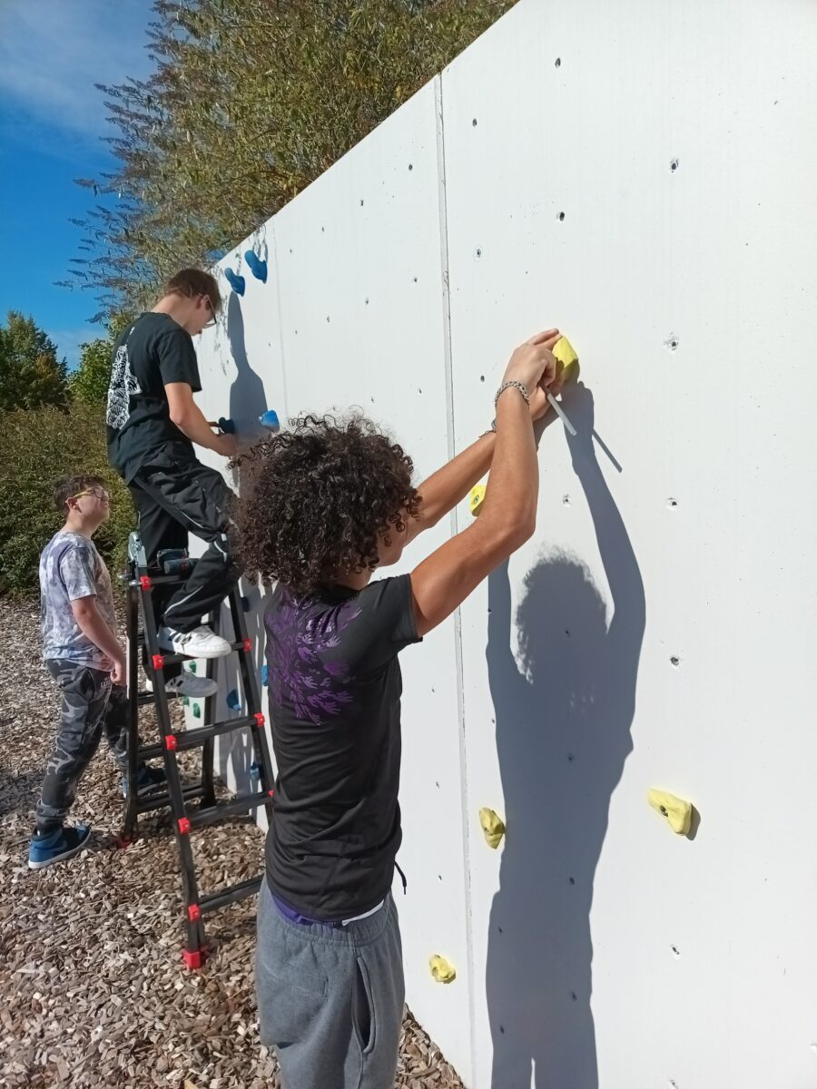 Die Stadt Eschenbach hatte die Wand nach dem Vandalismus umfassend gereinigt und vorbereiten. Danach hatten die Schüler alle Hände voll zu tun. “Das Projekt war Teil des Unterrichts, bei dem die Schüler nicht nur handwerkliche Fähigkeiten erlernten, sondern auch Verantwortung für ihre Umgebung übernahmen”, erklärte Ott. Die Schüler stellten fest, dass das Anbringen der Klettergriffe eine Herausforderung darstellen kann. “Nicht jeder Griff wollte sofort in den Bohrankern der Betonwand halten und musste oft nachjustiert werden”, so die Schüler während des Projekts. Dies erhöhte ihren Respekt vor der Einrichtung, umso mehr, weil sie die Arbeit der Vandalen nicht nachvollziehen konnten.