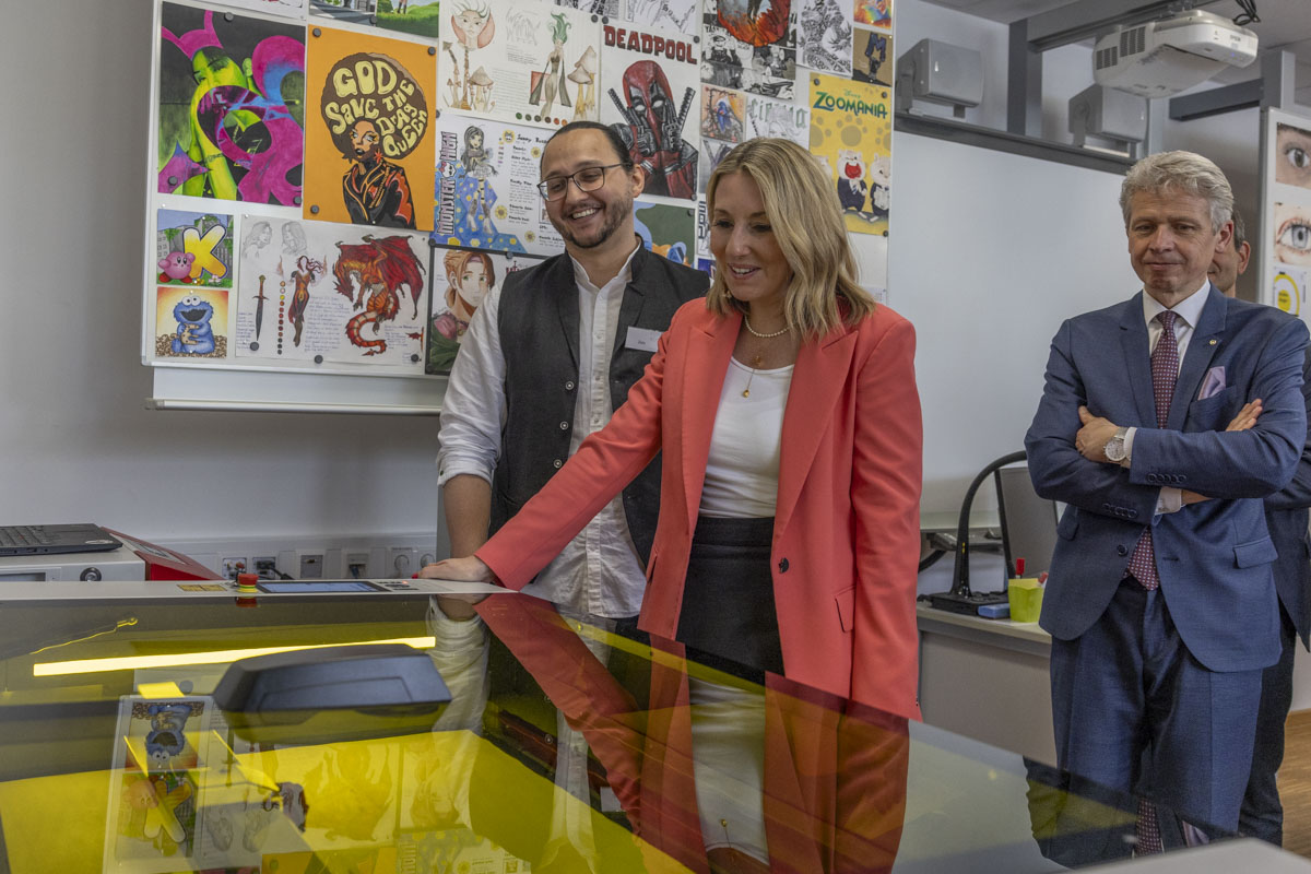 Die Kultusministerin war schnell von der Schule und den pfiffigen Schülern überzeugt: „Die FOSBOS bietet jungen Menschen ihren ganz persönlichen Weg zum Fachabitur und Abitur“, sagt Stolz. „Praxisnah, passgenau und zukunftsorientiert.“ Die einzigartige Kombination aus Allgemeinbildung, Fachtheorie und Fachpraxis sei ein starker Motor für Innovationen im Schulbereich und weit darüber hinaus. „Das zeigt sich zum Beispiel auch an modernen Ausbildungsrichtungen wie ,Internationale Wirtschaft’, die auch die FOSBOS Weiden zu einem hochattraktiven Schulstandort macht.“