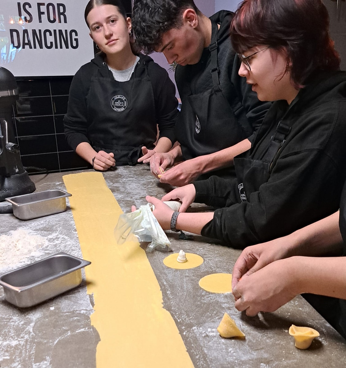Die Klasse M9 unter der Leitung von Fachlehrerin Christine Rupprecht durfte einen Einblick in die Welt eines Kochs im Küchenstudio von Adriano Colella in Eschenbach erhalten. Gemeinsam wurden Tortellini mit Tomatensugo, Mousse au Chocolat mit Mandelchip und Orangenspalten sowie ein Roggenbrot hergestellt. Am Ende durften die Schüler ihre selbst zubereiteten Speisen verkosten, was für große Begeisterung sorgte.