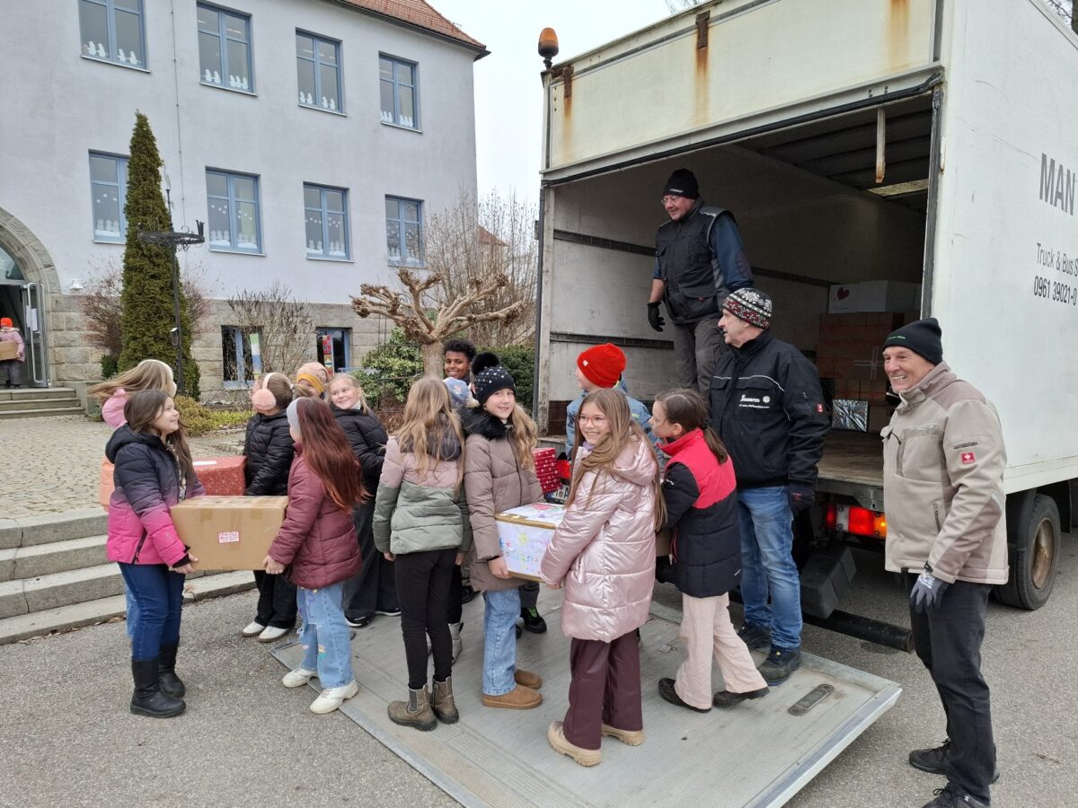 Beim Sammeln der Hilfspakete, in denen Lebensmittel und Grundnahrungsmittel sowie Hygieneartikel, aber auch Geschenke für Kinder verpackt sind, werden die „fahrenden Engel“ durch Spenden von Vereinen, Organisationen und Familien unterstützt. Für notleidende Kinder in Südosteuropa gibt es durch die Hilfsaktion aus der Oberpfalz an Weihnachten auch ein leckeres Essen und als Dreingabe tolle Kinderspielsachen. Beim Einladen der vielen freiwilligen Gaben wurde der Georgenberger auf seiner Tour erstmals von Josef Woppmann und Steffan Gruener kräftig unterstützt. In Eslarn helfen der Aktion seit Jahren die vier Grundschulklassen und die Eltern. Den Kontakt zu „Lugge“ knüpft Lehrerin Ramona Mensch und zu den Eltern Schulleiterin Katharina Merther.