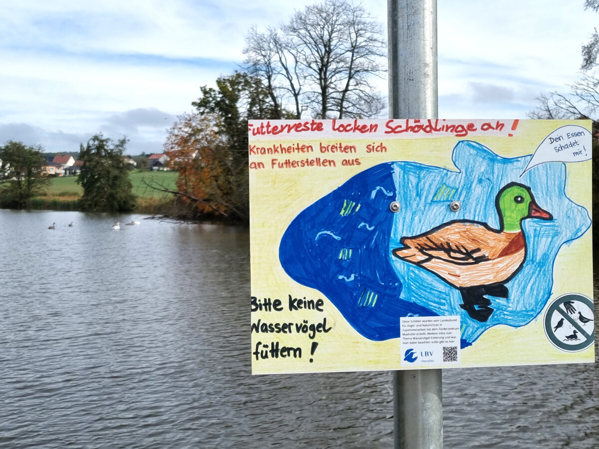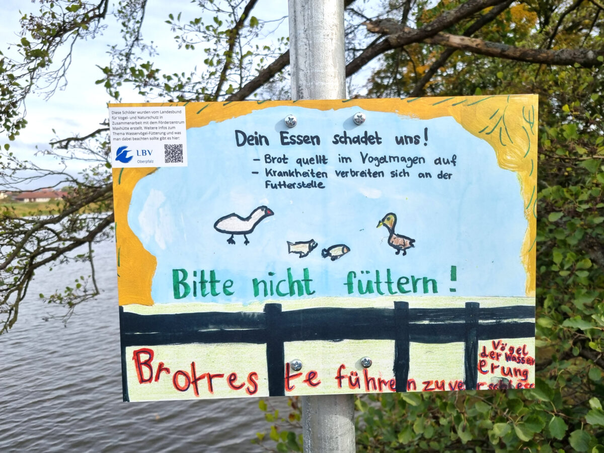 In einer gemeinschaftlichen Aktion mit Schülern des Sonderpädagogischen Förderzentrums Leonberg (SFZ) wurden zur Sensibilisierung der Bevölkerung über die Folgen der Wasservogel-Fütterung im Herbst 2022 informative Hinweisschilder in Maxhütte-Haidhof angebracht. Diese Initiative fand am Großen Stadlweiher statt und wurde vom Zweiten Bürgermeister Franz Brunner unterstützt.