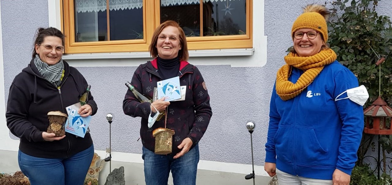 Moderne Häuser böten oft zu wenig Raum, weil es kaum mehr Ritzen und Spalten gebe. Die Ortsgruppe überlege, ob man an diesem Haus generell etwas für Gebäudebrüter tun kann, so Verena Bauer. Zusätzlich zur LBV-Plakette bekamen die beiden Frauen von der LBV-Gruppe Weiden-Neustadt/WN eine Flasche Bio-Wein mit dem Foto einer Feldlerche des Naturfotografen Fredy Voss, dazu ein Fettfutter-Häuschen, gefertigt von Mitglied Ingolf Miny.