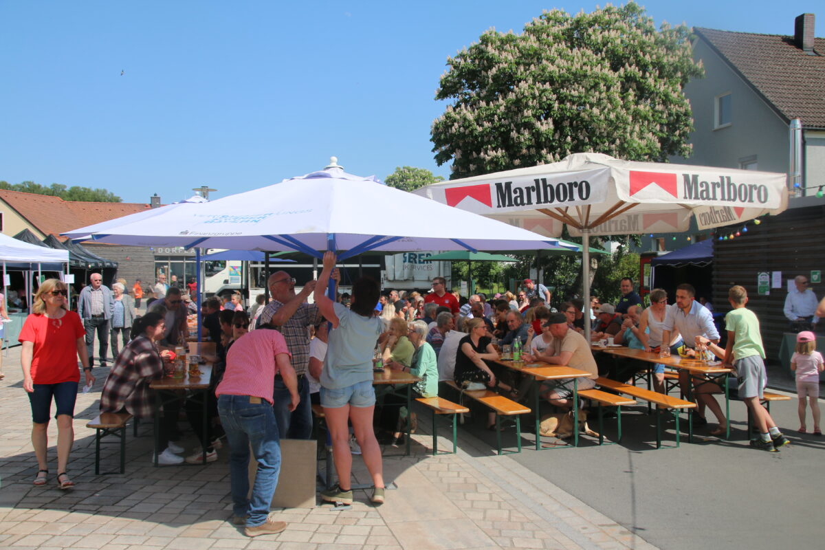 Für die Vereinskartell-Vorsitzende Regina Götz und Sabine Thumfart ein gelungenes Fest. Das Dorffest ist während der Pandemie entstanden und ersetzt das Bürgerfest. Es findet alles zwei Jahre statt. Götz erklärt: „Der Gedanke war nach Corona und Lockerung von Maßnahmen, die Menschen und die Vereine wieder zusammenzubringen.“ Als fester Termin gilt dafür der Pfingstsonntag: „Mit dem Pfingstmontag als Feiertag passt uns das gut mit der Organisation.“