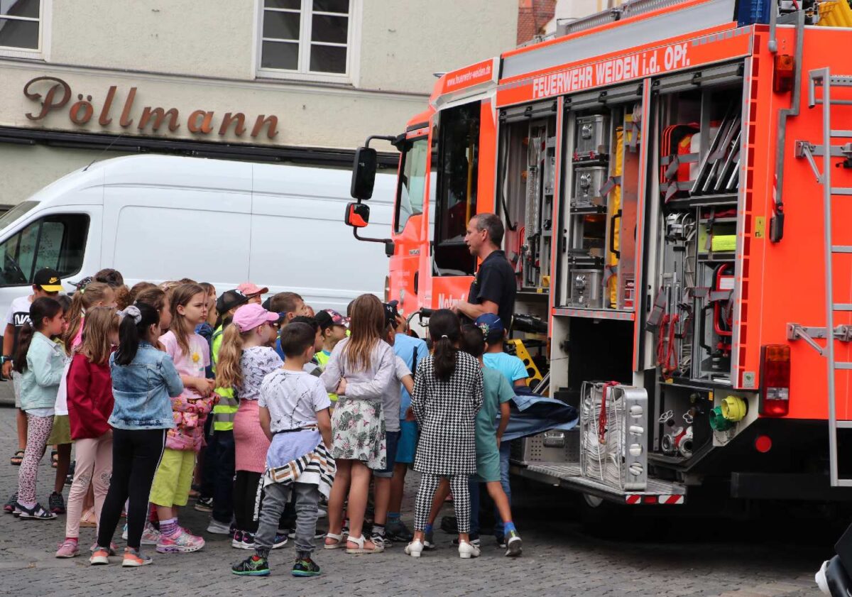 Zu sehen gibt es dieses Jahr die Polizei mit Polizeimotorrad und Polizeiauto, die Feuerwehr mit einem großen Löschfahrzeug, den Malteser Hilfsdienst mit Hebebühne und Rollstuhlparcours, das BRK mit einem Rettungswagen, das Busunternehmen Wies mit Informationen rund um das Busfahren und einem Bus, den Spielewagen des JUZ Weiden sowie die Sparkasse Oberpfalz Nord mit Mitmach-Aktionen.