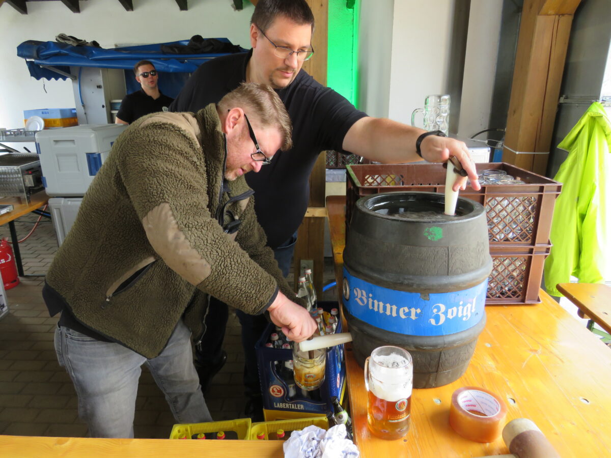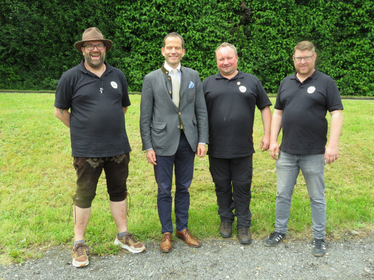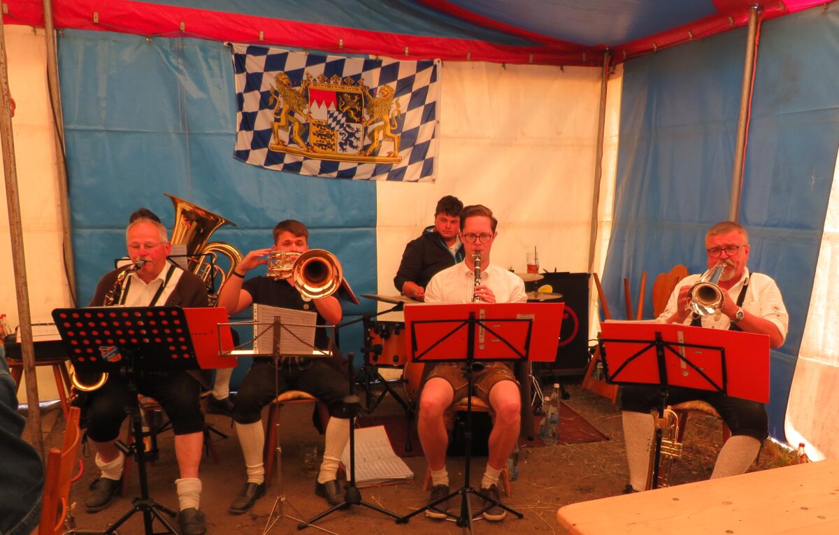 Nach dem Salutschießen hellte sich auch der bewölkte Himmel immer mehr auf. Bei Sonnenschein feierten die Besucher mit ihren Gastgebern. Das reichhaltige Kuchenbuffet und die Grillspezialitäten zogen am Nachmittag noch viele Besucher an. Zum Frühschoppen spielten Neuhauser Boum auf.