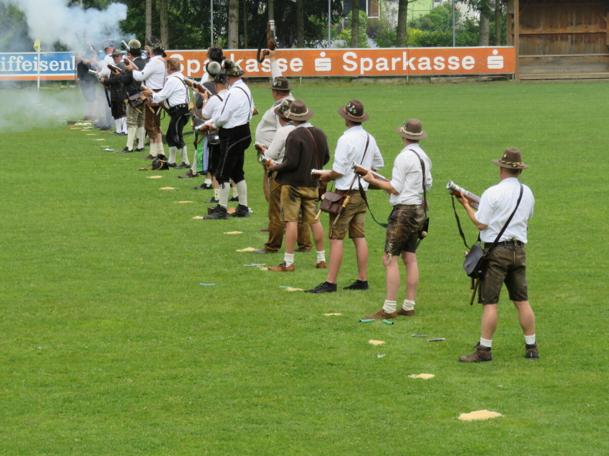 Zum Fest konnte Vorsitzender Markus Bachmeier auch Schirmherrn MdB Albrecht Rupprecht und den Böllerreferenten des Schützenbezirks Oberpfalz Alexander Eichelberger begrüßen. Am Vormittag schmeckte das Weiß-Wurst Frühstück. In einem Zelt vor dem Schützenkeller servierten die Schützen ihren Gästen zum Mittagessen Schweinebraten und Knödel. Um 14 Uhr schossen 19 Böllerschützen und ein Kanonier den Festsalut. Das Kommando gab Böllerkommandant Jürgen Landgraf den Platz.