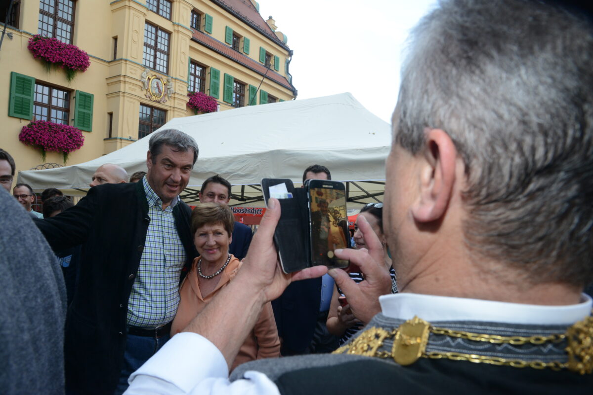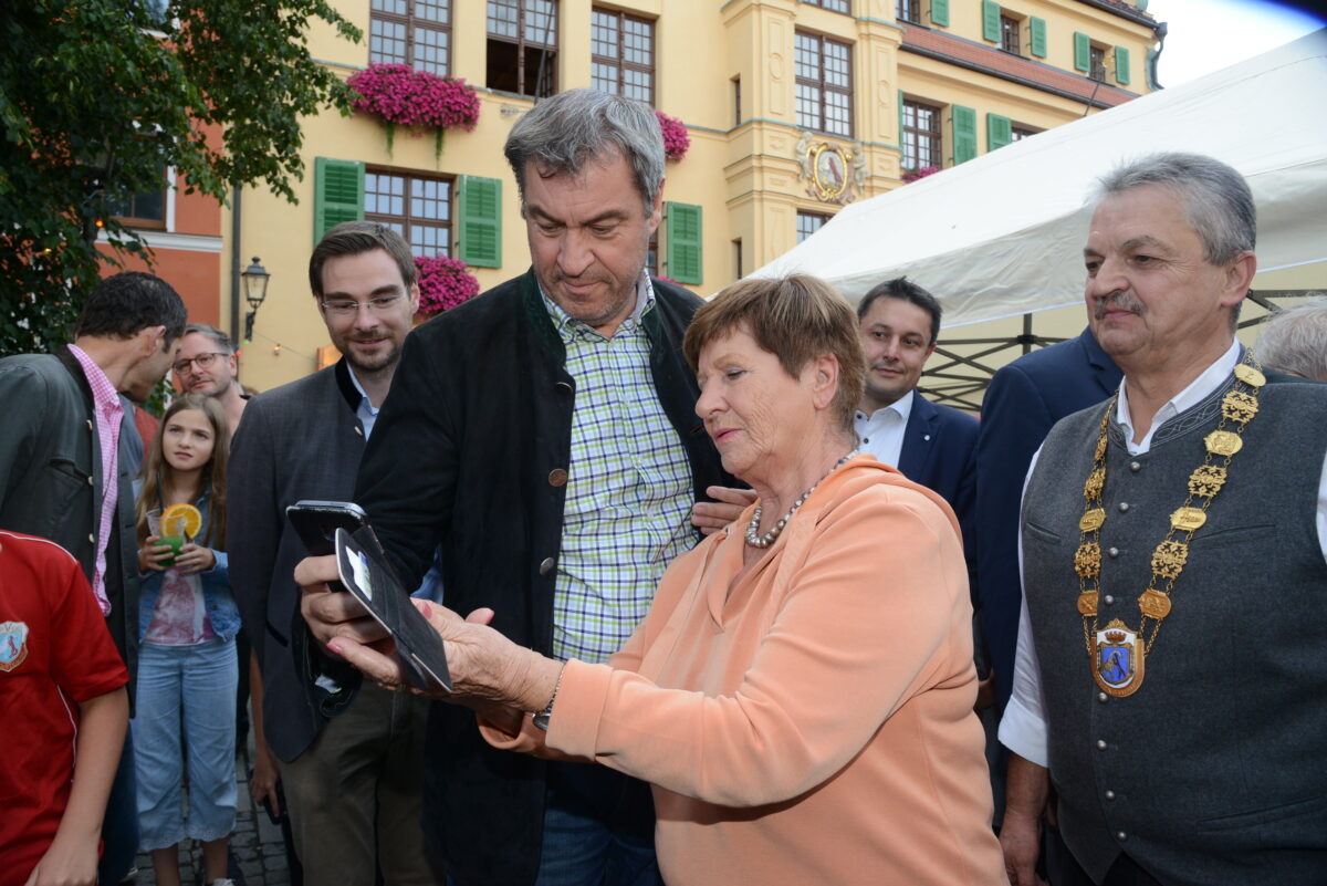 Dann begann für den Ministerpräsidenten das oftmals zitierte „Bad in der Menge“. Selfies waren gefragt und wenn’s mal nicht richtig klappen wollte, übernahm Söder selbst das Handy, um passende Erinnerungsbilder zu schießen. Der Jubel der Gäste beim Durchschreiten des Weges zwischen den Biertischreihen war groß.