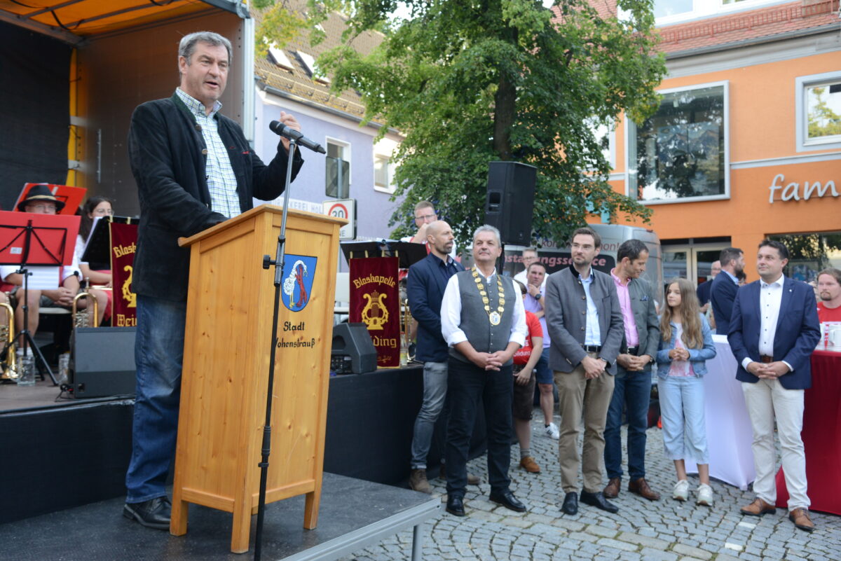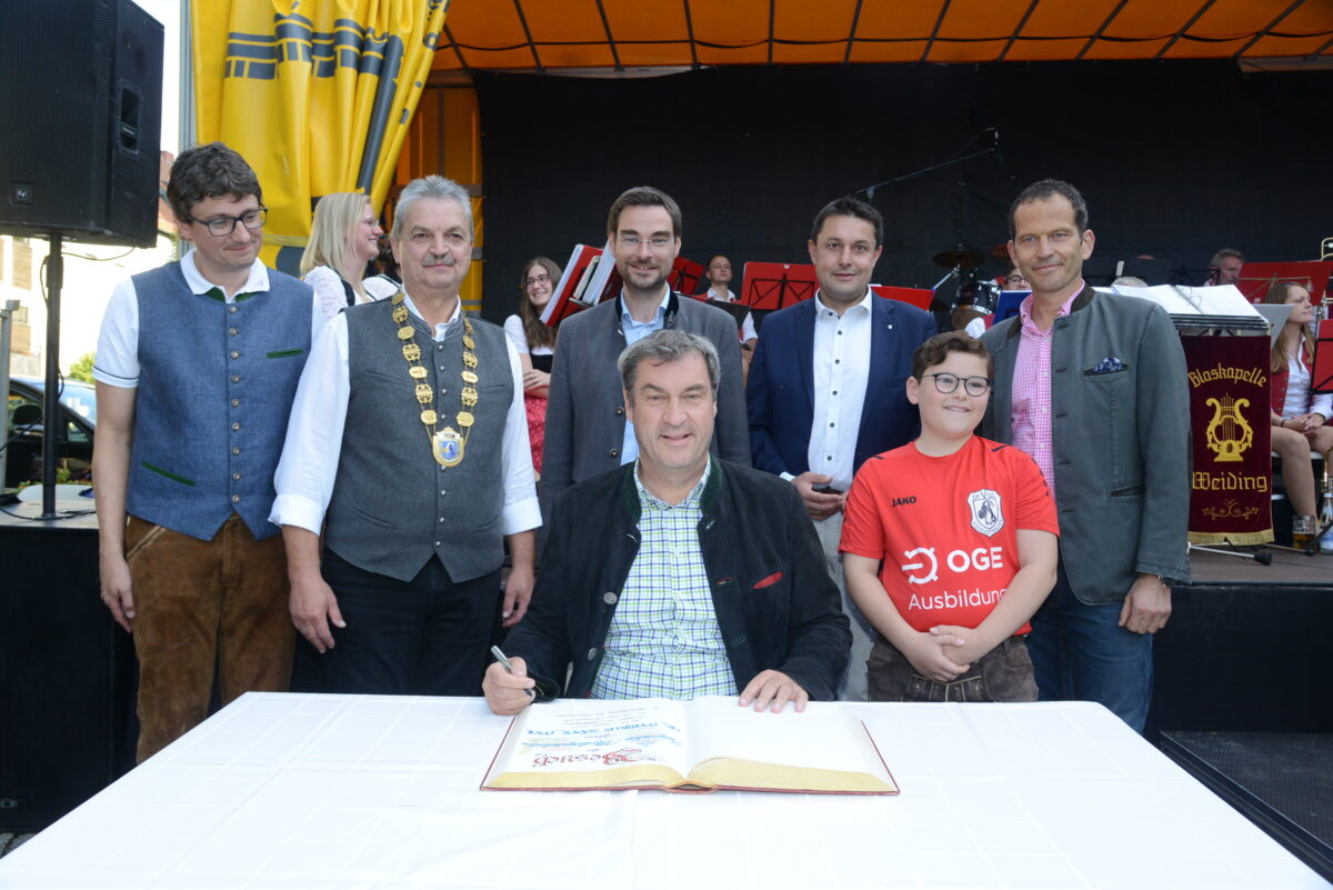 Bürgermeister Wutzlhofer listete die bayerischen Ministerpräsidenten auf, die die Stadt Vohenstrauß bisher besucht haben: Alfons Goppel, Franz Josef Strauß und Edmund Stoiber. “Für mich ist es das erste Mal, dass ich einen Ministerpräsidenten begrüßen darf.” Söder trug sich ins Goldene Buch der Stadt Vohenstrauß ein.