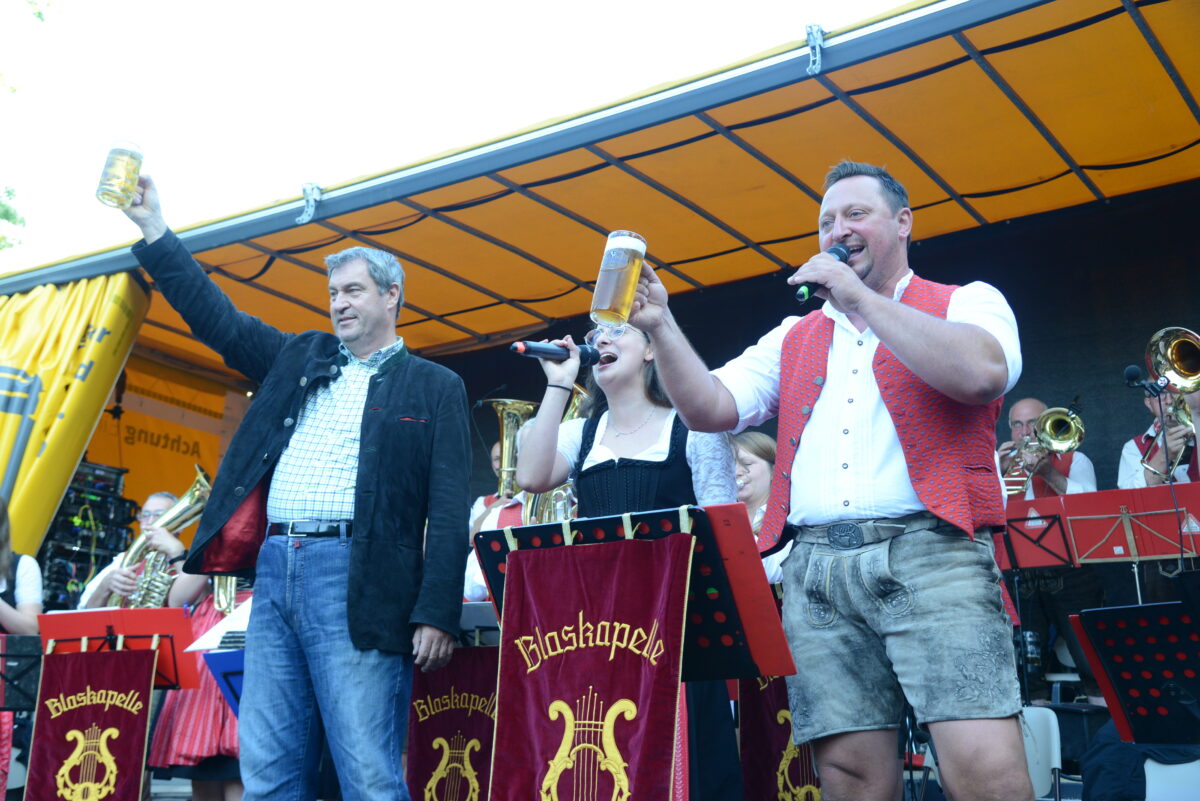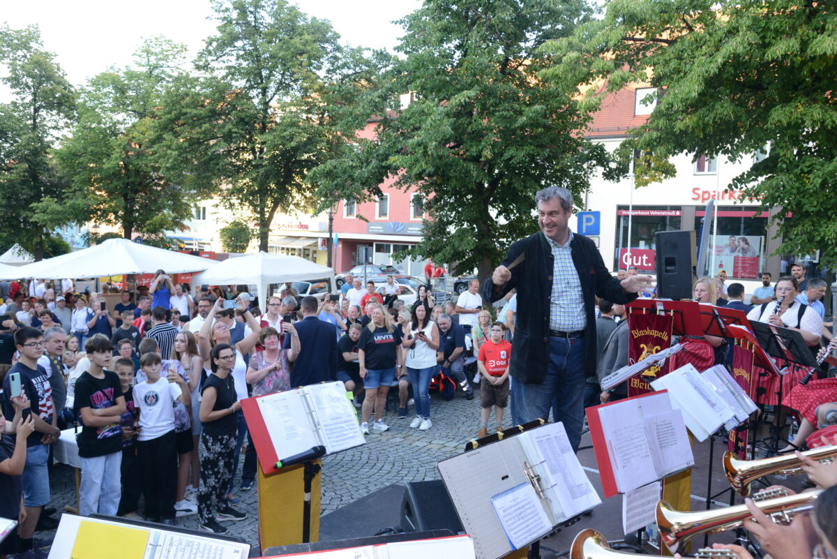 Zum Abschluss dirigierte Markus Söder einen Marsch der Blaskapelle Weiding, um anschließend nochmals eine kleine “Selfietour” zu machen.