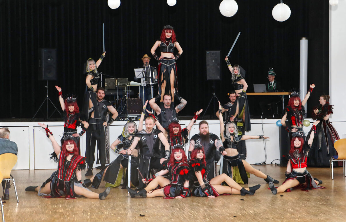 Am späteren Nachmittag zog die Garde aus Reuth bei Erbendorf mit dem Prinzenpaar Jasmin und Wolfgang in den Saal ein. Neben dem Gardetanz zeigten sie auch ihren Showtanz, der die Senioren in die Welt der Hexen und Hexenjäger führte.