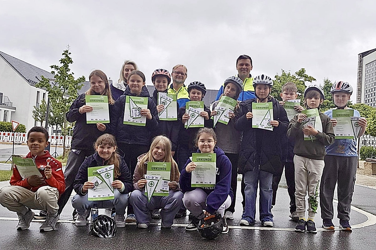 Besonders erfreulich: Alle teilnehmenden Kinder der Klassen 4a und 4b bestanden die Prüfung und erhielten im Anschluss stolz ihren Fahrradführerschein. Die Schulleitung und die betreuenden Lehrkräfte zeigten sich begeistert vom Engagement der Kinder und dem reibungslosen Ablauf der Prüfung.