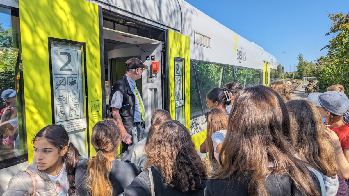 Am vierten Tag erhielten die Schulwegbegleiter einen Einblick in den Weidener Bahnhof und den Zugverkehr. Die Verkehrsgesellschaft „Agilis“ hatte eigens eine Zuggarnitur bereitgestellt. Die Ausbildungs-Lokführer Bernd Wolfrum und Andreas Kasper erklärten die Notruf- und Kommunikationseinrichtungen. Auf großes Interesse stieß auch die Besichtigung des Führerstands des Triebfahrzeugs.