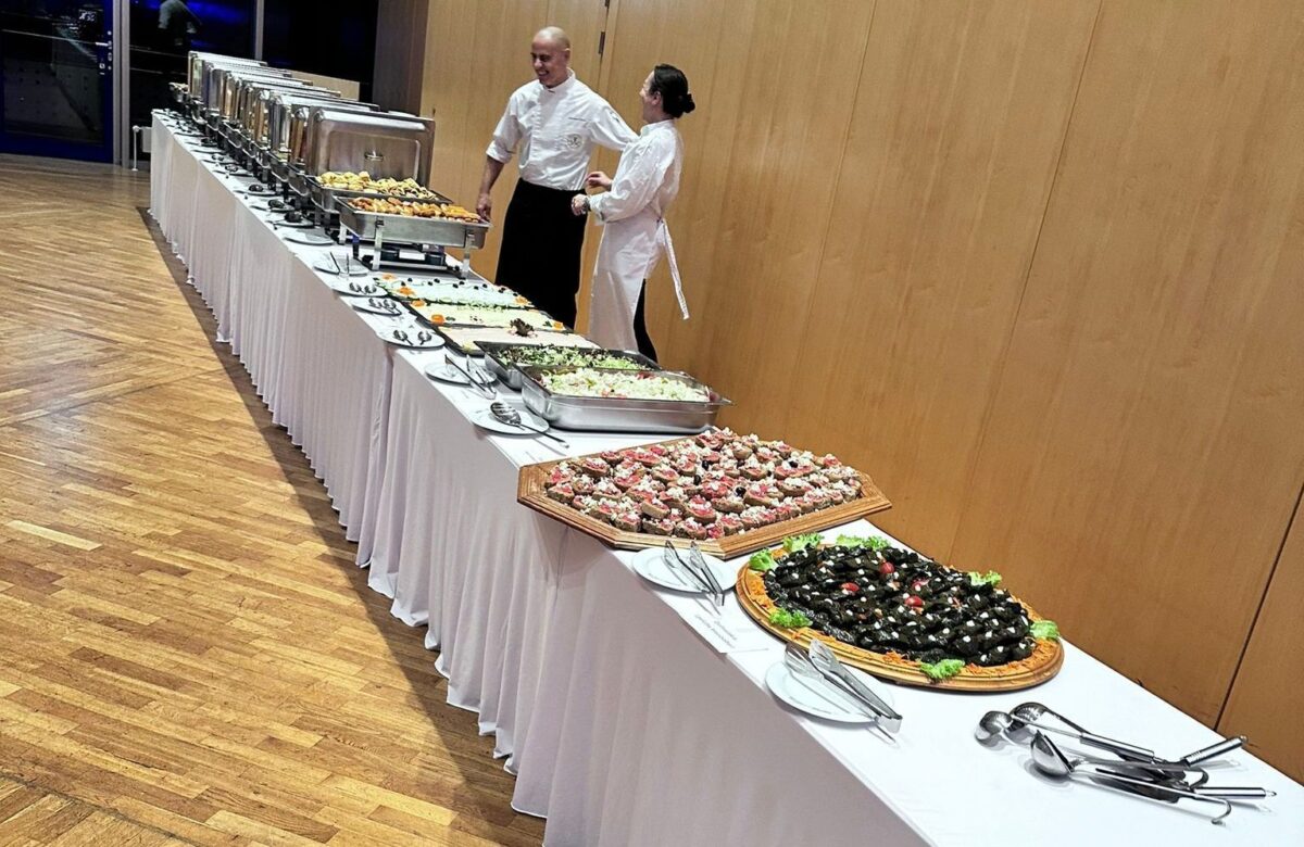 Das reichhaltige Büfett bietet eine kulinarische Reise durch mediterrane Köstlichkeiten, die keine Wünsche offenlassen. Von frisch gebackenen, hausgemachten Semmeln und knusprigen Knoblauch-Pitas bis hin zu einer Vielfalt an Salaten wie grünem Salat, Krautsalat und dem würzigen Bauernsalat ist für den perfekten Einstieg gesorgt. Klassische Beilagen wie Zaziki, Taramas und pikante Feta-Creme sowie delikate gefüllte Weinblätter und Mozzarella-Tomaten-Sticks ergänzen das Angebot.