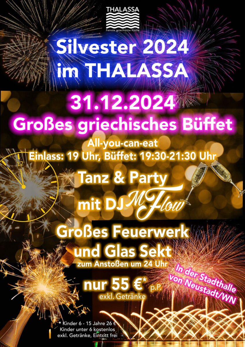 Die Tickets für den Silvesterball gibt es für 55 Euro p.P. – Getränke sind nicht im Preis enthalten. Jetzt unter der Telefonnummer 0162/3279956, direkt im Restaurant Thalassa, per E-Mail an info@restaurant-thalassa.de oder online bequem über das Kontaktformular reservieren!