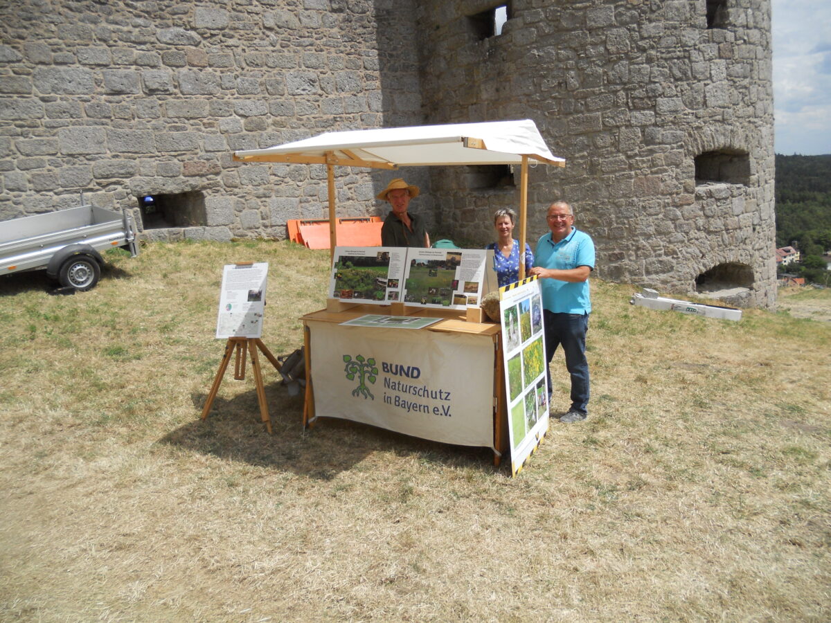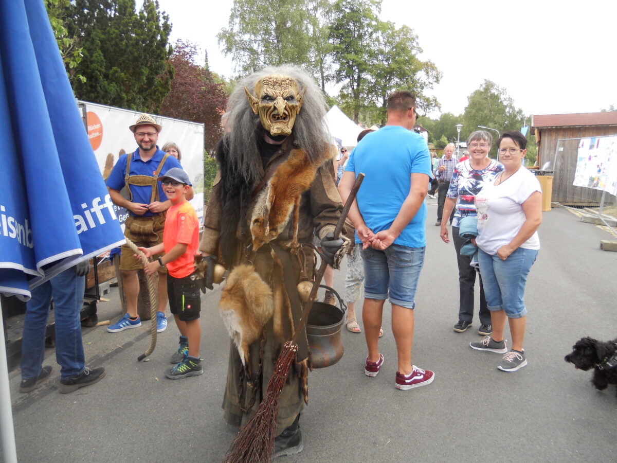 Was wirklich sehenswert und erlebenswert war, waren die Aussteller aus der Region. Um nur einige zu nennen: Die Raiffeisenbank Floß hatte einen Stand mit Münzprägstation dabei, beim Aufgang auf die Burg begegnete man dem Imkereiverein Flossenbürg/Floß, eine Begegnung der anderen Art waren die Aussteller und Statisten der ,,Flossbochdeifln“. Hier war den ganzen Nachmittag auch mit Sicherheit der (Alb-)traum so mancher Männer in Figur einer herrlich gekleideten Trud unterwegs. Sie war bestimmt nicht jedem Kind vertrauenerweckend.