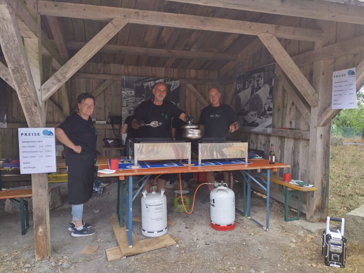 Zum Mittag wurden Spezialitäten, wie Kistenfleisch und Grillgut angeboten. Die Fläche vor dem Kiosk war bereits vormittags gut besucht und man hatte wirklich alle Hände voll zu tun, die vielen hungrigen und durstigen Seelen zufriedenzustellen.