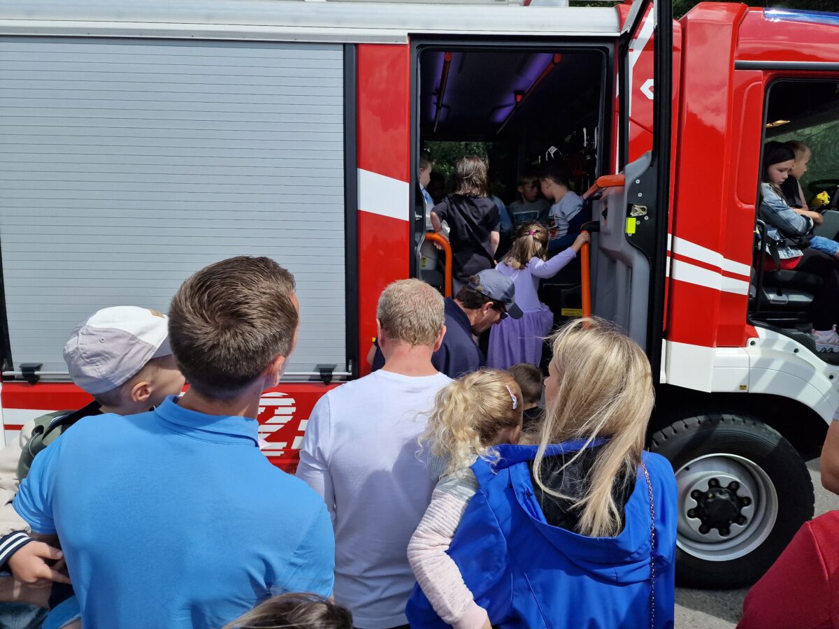 Der Elternbeirat mit Vorsitzender Juliane Deinzer hatten die Verpflegungstafel mit Kaffee, Kuchen und Grillspezialitäten bestens im Griff. Sie lockten gar mit einer Tombola und 800 wertvollen Sachpreisen. Für die Kinder war Belustigung auf dem Spvgg-Gelände angesagt, vom Wasserspritzen, einer Schatzsuche oder dem Schubkarrenrennen reichte das Programm. Schließlich „Tatütata“ und Blaulicht. Ist etwas passiert? Nein, die Feuerwehr Schirmitz lud die Kinder zu einer Fahrt im Feuerwehrauto ein, es ging auf eine Tour durch den Ort.