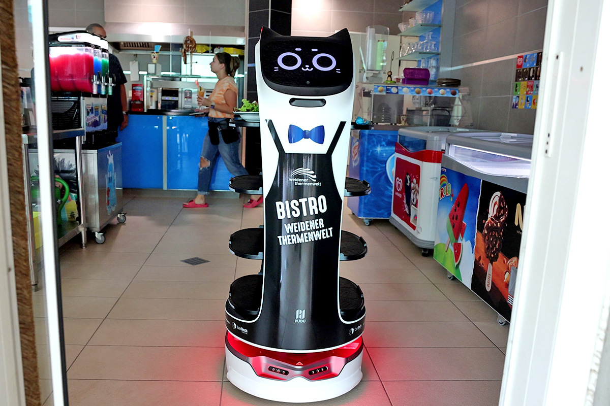 Service-Roboter werden vorrangig dazu genutzt, um menschliche Mitarbeiter in ihrem täglichen Arbeitsablauf zu unterstützen. Dies ermöglicht den Angestellten, sich vermehrt auf die wertvollste Kundentätigkeit zu fokussieren. Diese Idee hat nun auch das Bistro-Team der Thermenwelt in Weiden übernommen und sie beschafften sich solch einen Roboter.