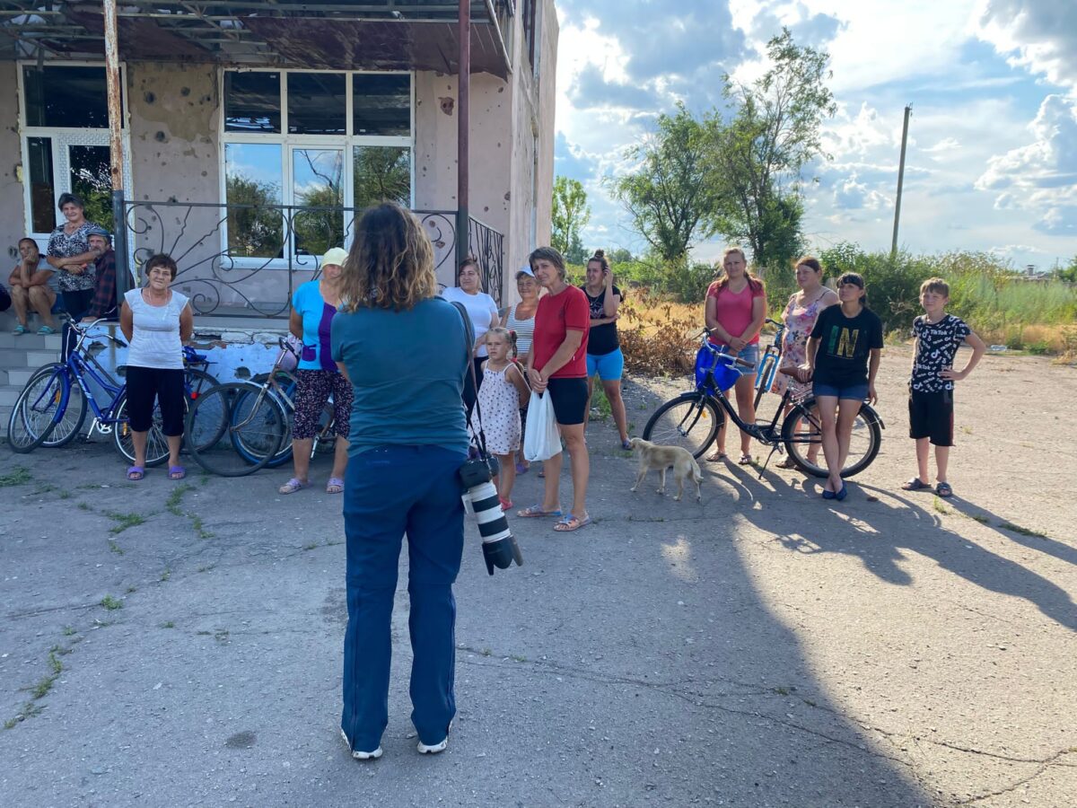 Es ist schwer mit Worten zu beschreiben: Ein Beispiel von vielen: Ein Dorf zählte vor dem Krieg 450 Einwohner. Jetzt sind es noch circa 40, davon 22 Kinder. Der Rest wurde ermordet, mehr als 40 Kinder im Alter von drei bis zwölf Jahren wurden nach Russland verschleppt. Anzahl der unbeschädigten Häuser: 0, Anzahl der Gebäude, die nach unseren Standards bewohnbar sind: 1, Anzahl der Gebäude mit Fenster: 1, Anzahl der Tränen: unzählig.