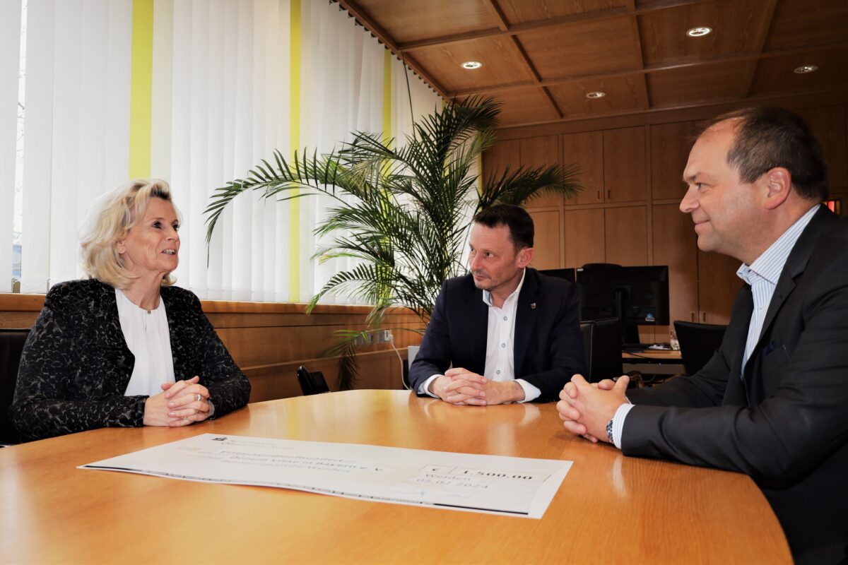 „Die Unterstützung von sozialen Projekten in unserer Region liegt uns sehr am Herzen. Ich bin überzeugt, dass das Geld bei Donum Vitae bestens investiert ist“, so Hans-Jörg Schön. Andrea Lang, Bevollmächtigte der Beratungsstelle in Weiden, nahm den Scheck überaus dankbar entgegen, denn, um die vielen Beratungsfelder aufrechterhalten zu können, sei Donum Vitae neben Fördermittel auf Spenden angewiesen.