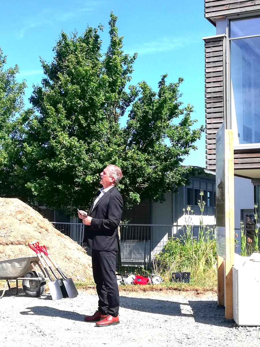 Roland Eichhorn überbrachte für das Bayerische Landesamt für Umwelt ein Grußwort, in dem als Leihgeber die Entscheidung für den Standort GEO-Zentrum als bewusste Unterstützung der langjährigen Bildungsarbeit der Umweltstation bezeichnete. „Das Erdbodenhaus ist ein Geschenk für uns und unsere bedeutende Sammlung von Bodenprofilen aus ganz Bayern.“