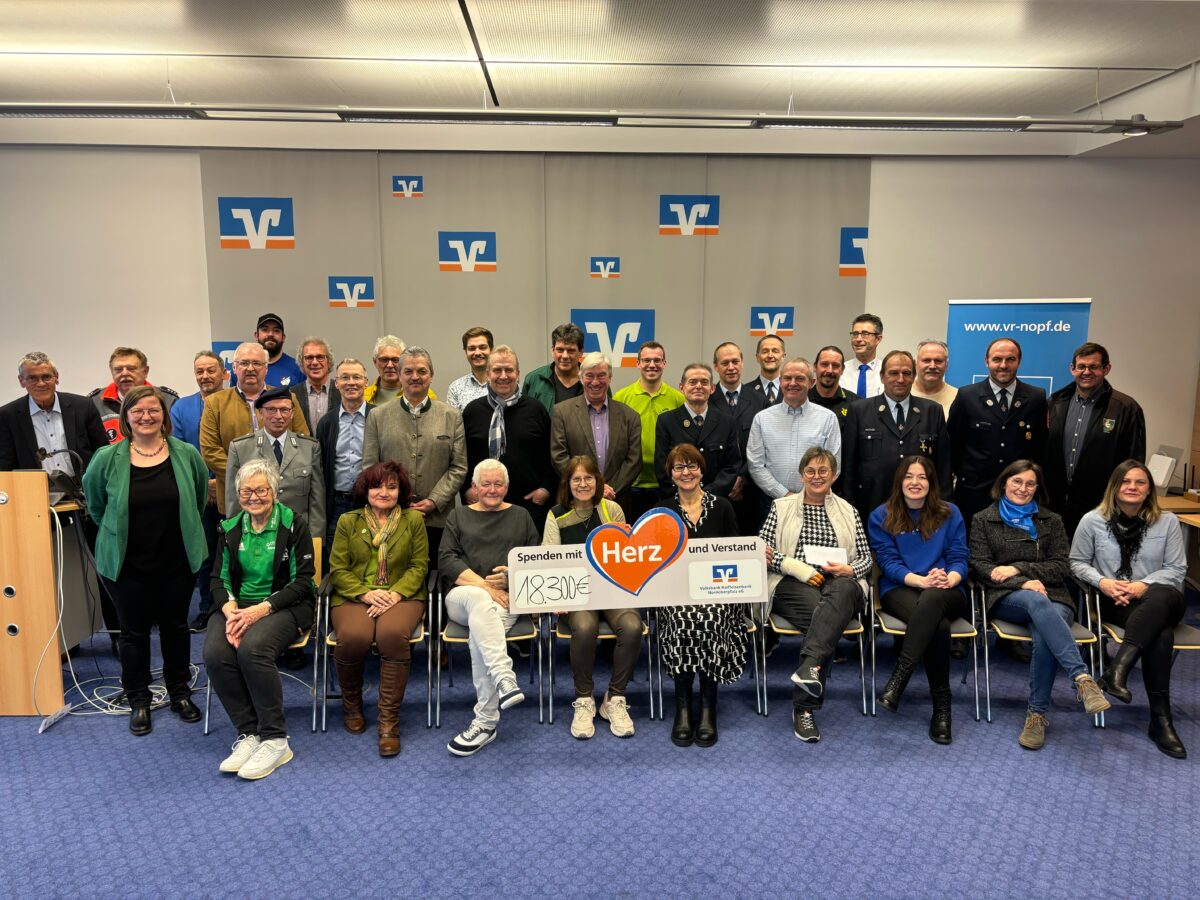 Im Rahmen des ersten Teils ihrer diesjährigen Spendenaktion hat die Volksbank Raiffeisenbank Nordoberpfalz eG 37 Vereine und Institutionen aus Vohenstrauß und Umgebung mit großzügigen Mitteln aus dem Gewinnsparfonds unterstützt. Insgesamt wurden bei dieser ersten Übergabe 18.300 Euro zur Verteilung bereitgestellt. Zur Übergabe hatten Regionalmarktleiter Anton Zilbauer und Geschäftsstellenleiterin Daniela Kühner die Vertreterinnen und Vertreter der Vereine und Institutionen in den großen Veranstaltungssaal nach Vohenstrauß eingeladen.