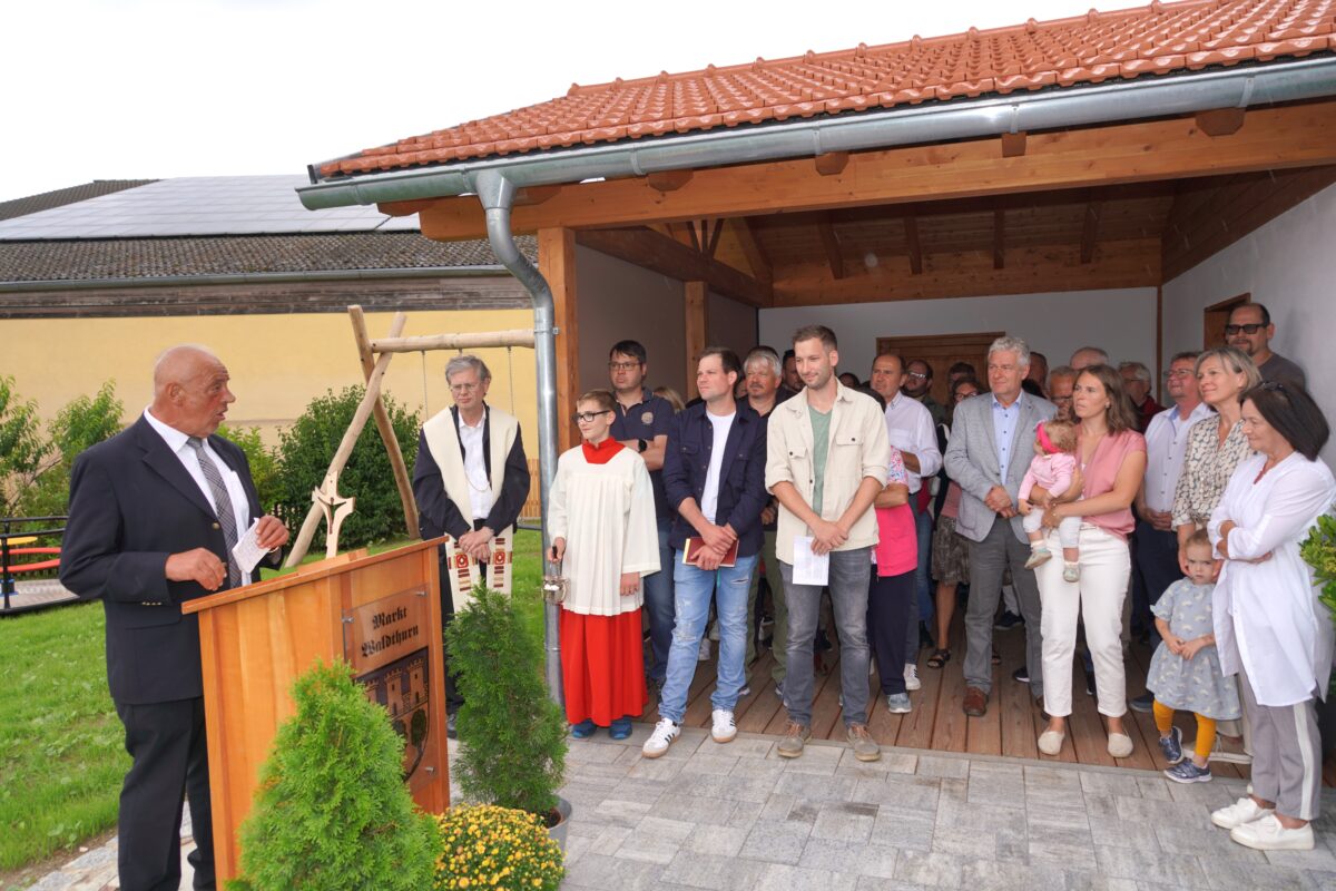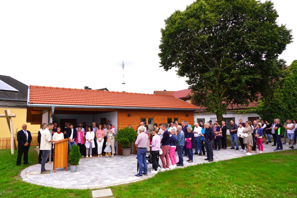 Bevor die offizielle Segnung und Eröffnung war, gab Thomas Schwab einen kurzen aber prägnanten Abriss der Planungs- und Bauarbeiten. Dabei stellte der Sprecher die vielen „Helfer“ in den Mittelpunkt. Egal ob Dorfheisl oder Außenanlagen, die Spielberger ließen sich nicht lumpen und waren unermüdlich für ihr Dorf, mit viel Fachwissen und Engagement bei der Arbeit. „Dieses Projekt zeigt, dass man mit Zusammenhalt, Fleiß und Einsatz für die Allgemeinheit viel erreichen kann“.