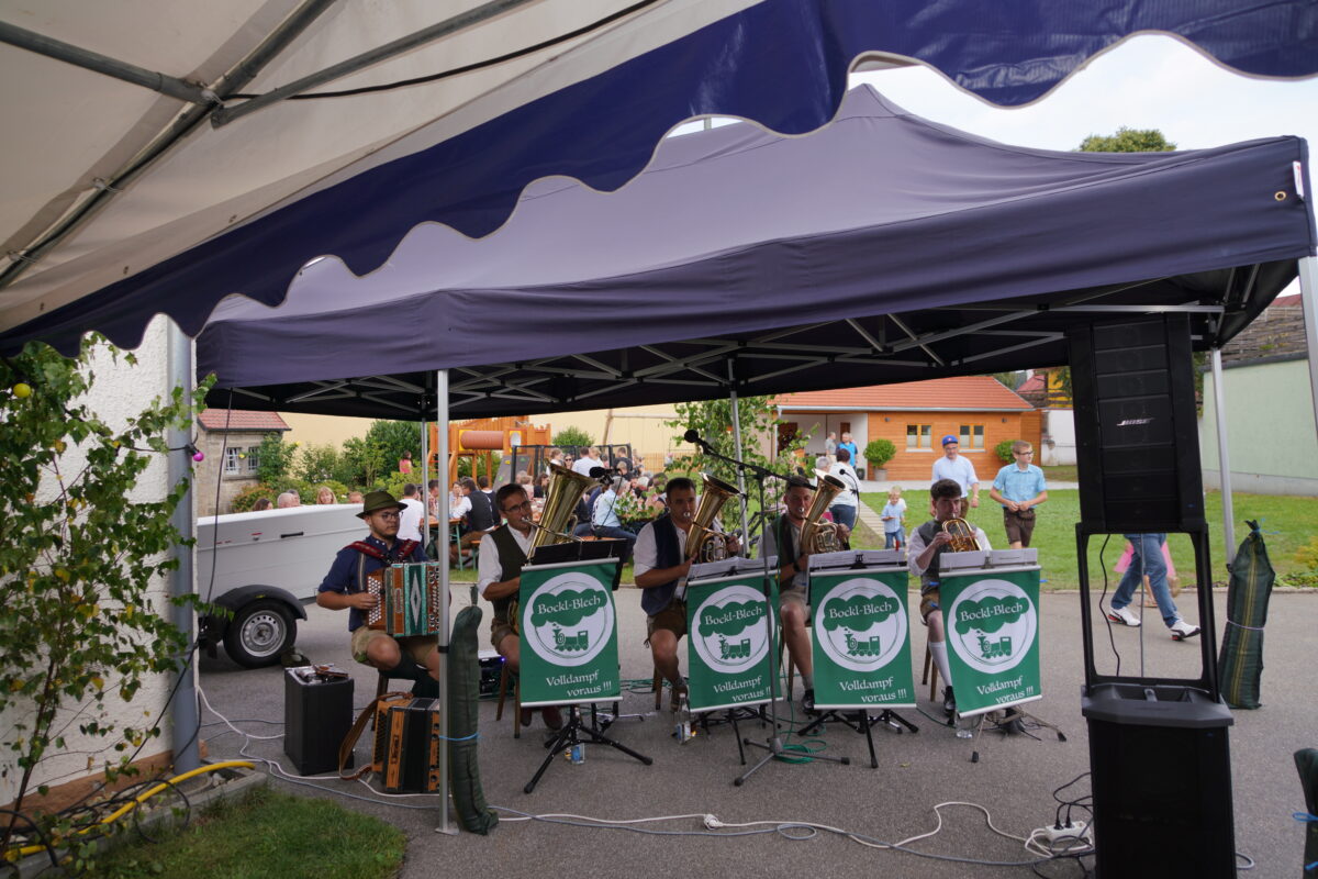„An Gottes Segen ist alles gelegen“. Pfarrer Norbert Götz erbat schließlich den Segen Gottes, Andreas Schmid sprach die Lesung. Anschließend wurde im, am und um das Dorfheisl ein zünftiges Fest mit vielen Gästen und der Musik von Bockl – Blech vom Waidhauser Grenzland gefeiert. Sogar die Freunde der Partnerfeuerwehr Spielberg bei Waldmünchen waren zu ihren „Waldthurner Spielbergern“ mit einem Bus angereist.