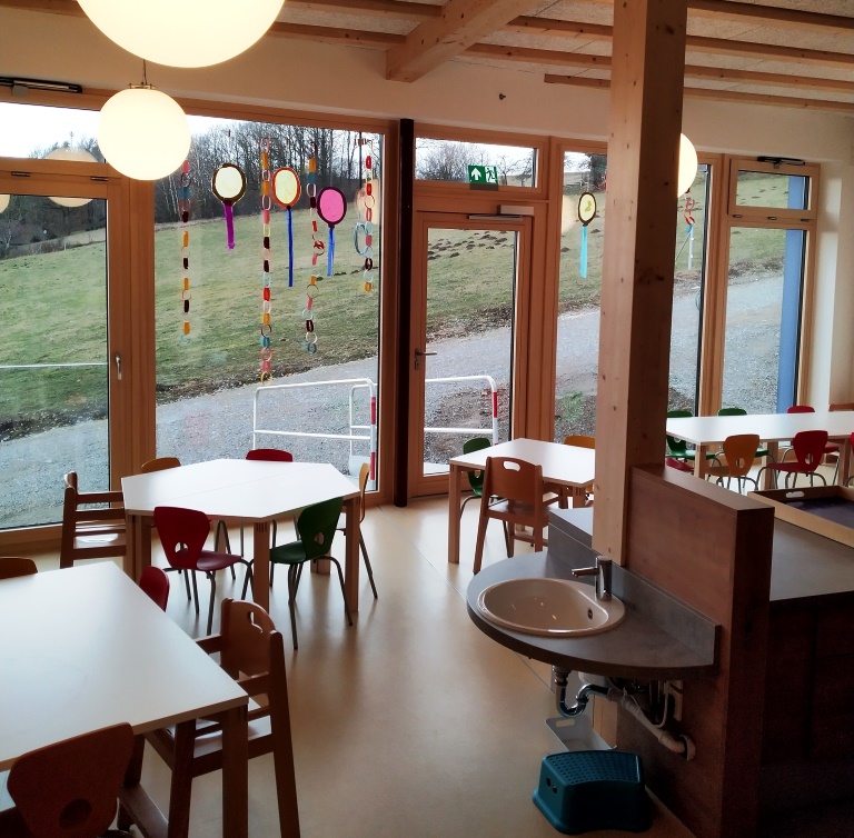 Die lichtdurchfluteten Aufenthaltsräume bieten ein einzigartiges Panorama und sind aufgrund der kindgerechten Innenausstattung ein wahres Spielparadies. Ein besonderes Extra ist die beheizte „Kinderwagengarage“ im Eingangsbereich und im Untergeschoss wurde ein frei gewordener Raum zum Werkraum umfunktioniert. Hinter all diesen Veränderungen jedoch, liegt ein weiter Weg.