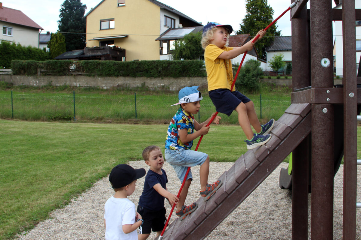 Der Spielplatz ist nicht nur eine Bereicherung für den Sportplatz, sondern für den ganzen Ort und die ganze Gemeinde. Damit wird der Sportplatz noch mehr ein Treffpunkt für Jung und Alt. Dieses neue Kinderparadies bietet für jeden etwas. So ist der Kletterkubus mit Turm, Wackelbrücke und Rutsche ein zentrales Element für alle Altersgruppen. Natürlich darf eine Zweierschaukel nicht fehlen. Aber auch neue und bisher zumindest hier in der Marktgemeinde noch nicht zu findende Spielgeräte, wie die Balancierwippe und eine Seilbahn, wurden angeschafft.