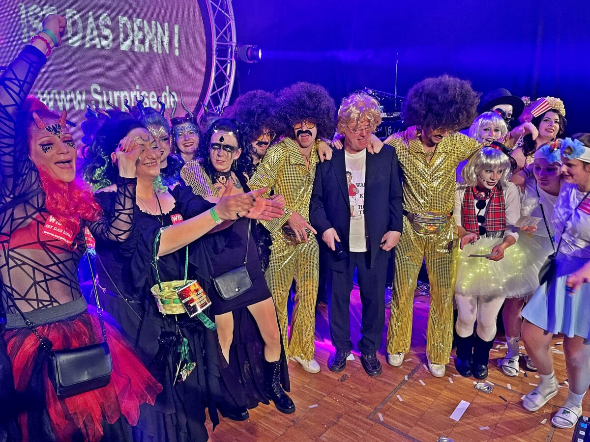 Schon vor dem offiziellen Startschuss strömten die Faschingsbegeisterten in die Halle, denn ab 21 Uhr war eine Stunde lang war „Happy Hour“ angesagt, was „reduzierte Preise wie im letzten Jahrhundert“ bedeutete. Bei Intro-Musik und dezenter Einstimmungsmusik startete die Partyband „Surprise“ mit ihren fünf Musikern zum inzwischen 17. Mal.