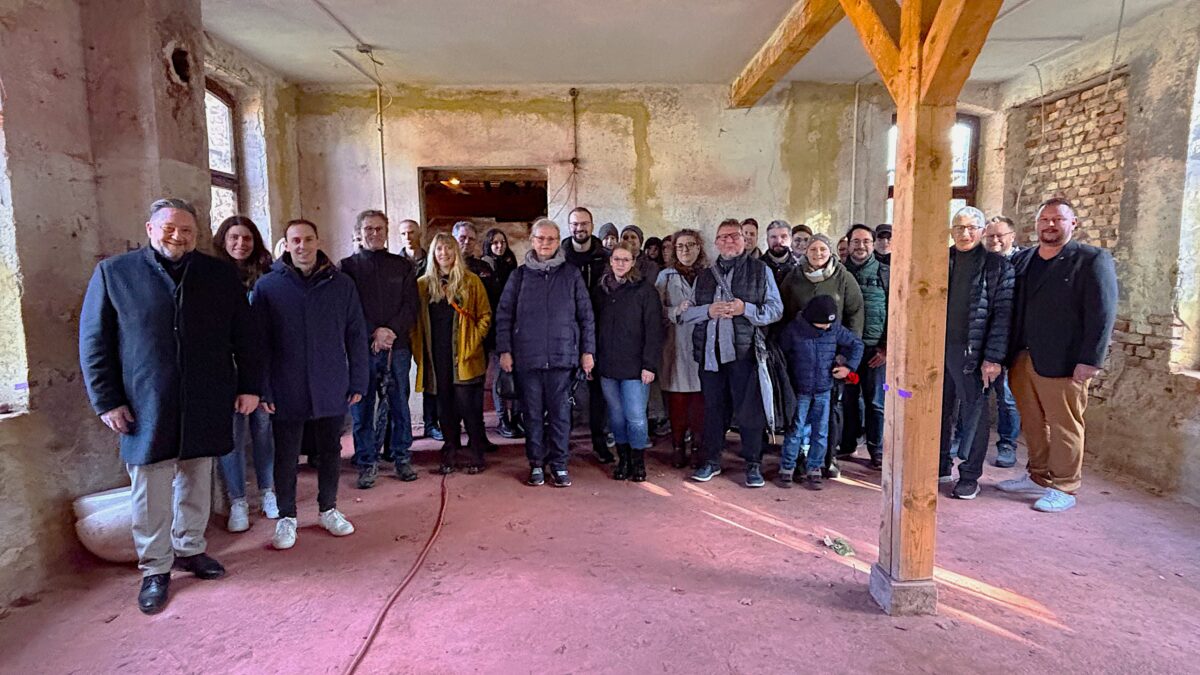 Wie schon bei den bisherigen Empfängen begann der Nachmittag mit einer Führung durch das Industriedenkmal „D’Schleif“ in Münchshofen. Ortsheimatpfleger Matthias Haberl führte die Gruppe über das Gelände des ehemaligen Glasschleif- und Polierwerks an der Naab und gab spannende Einblicke in die Geschichte des traditionsreichen Industriedenkmals aus dem 19. Jahrhundert.