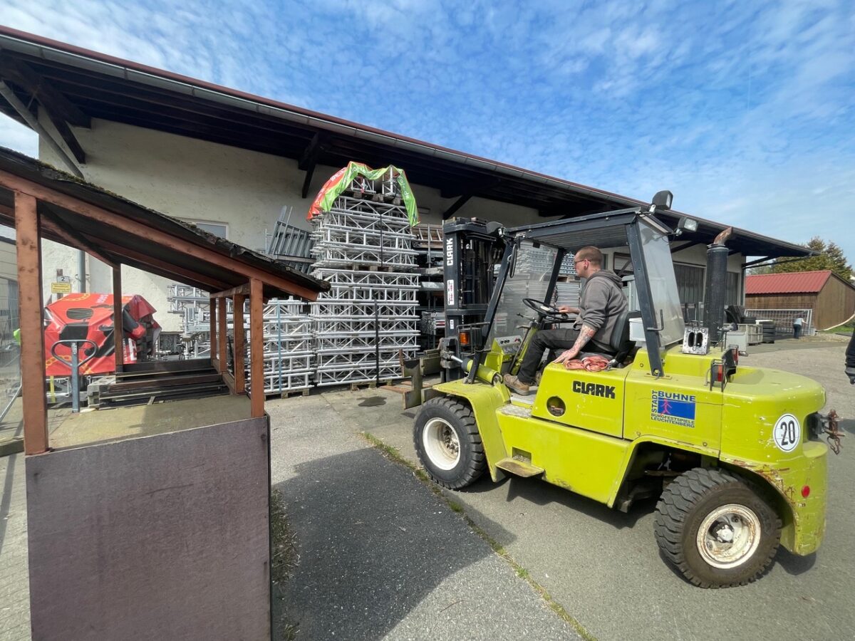 Ein wichtiger Schritt ist auch hinter den Kulissen bereits geschafft: Am Samstag, den 18. April 2026, fand eine große Aufräum- und Sortieraktion für die Tribüne statt, die im Schlossgarten aufgebaut wird. Viele Helferinnen und Helfer packten tatkräftig mit an, sortierten Material und bereiteten alles für den Aufbau vor. Durch die Arbeit der Mitglieder der Stadtbühne Vohenstrauß wurde zusätzlich rund um die Werkstatt- und Probenhalle des Vereins aufgeräumt und sauber gemacht. Nun herrscht wieder Ordnung und die Tribünenteile sind bereit für den Umzug in den Schlossgarten der Friedrichsburg, wo ab 30. Mai 2026 die Aufführungen des 1. Vohenstraußer Kultursommers laufen werden.