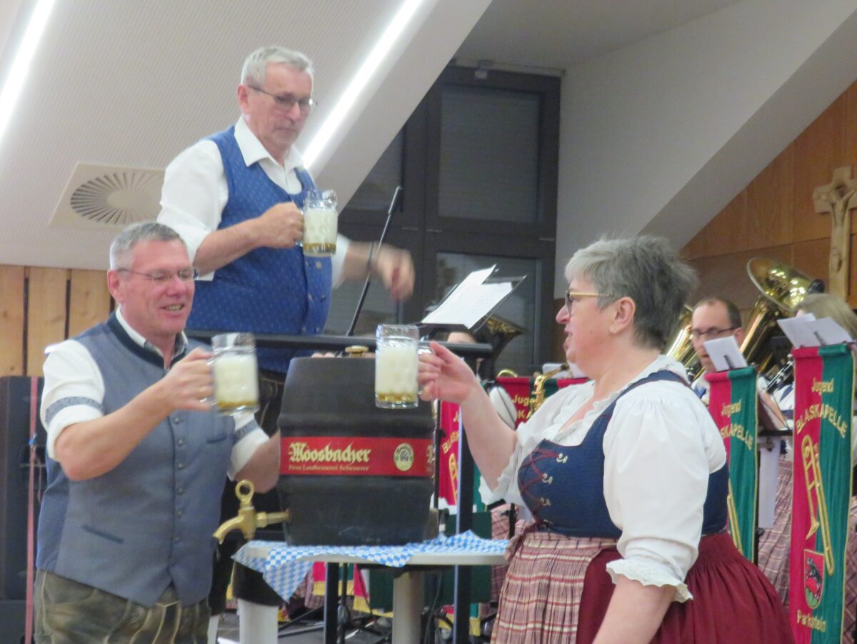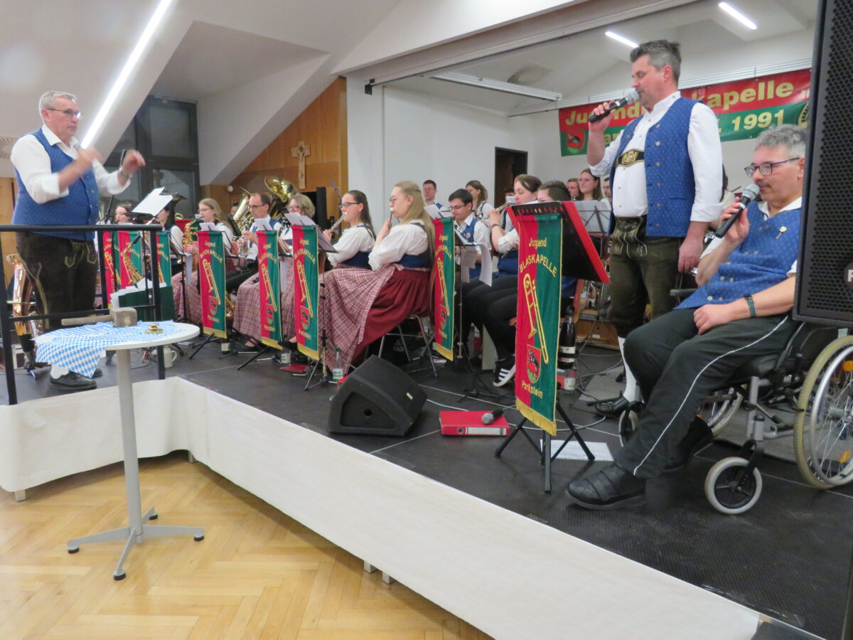 Vorsitzender Gisela Witt begrüßte auch zahlreiche befreundete Musiker aus der ganzen Umgebung. Nach dem ersten, dem Auftakt mit „Ein Prosit der Gemütlichkeit“ zogen die Musiker der Jugendblaskapelle alle musikalischen Register. Mit Stücken wie Böhmischer Wind, Böhmischer Traum, oder der Herz-Schmerz-Polka heizten die Musikerinnen und Musiker die Stimmung an.