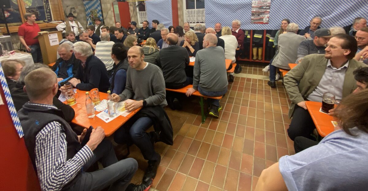 Nicht nur der Erste Vorsitzende Florian Plödt freute sich über diese Stimmung freuen, er konnte zahlreiche Besucher in dem bis auf den letzten Platz besetzten Feuerwehrhaus begrüßen – auch die Gäste Vereine aus den Nachbargemeinden Waldthurn, Georgenberg, Floß und Flossenbürg füllten das für den jährlichen Starkbieranstich freigeräumte Gerätehaus. Zusätzliche Plätze gab es noch in der „Bar“ im Obergeschoß. Für die Riesenstimmung sorgten zuletzt auch die drei Musikanten der Mittelberg Musik mit bayrischen Rhythmen und witzigen Erzählungen aus dem Leben der Musikanten.