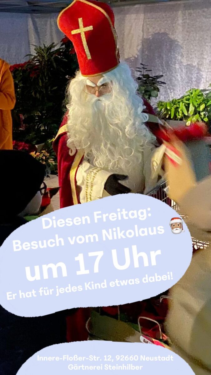 Am Freitag, 21. November 2025, um 17 Uhr kommt der Nikolaus in die Gärtnerei – und hat für jedes Kind eine kleine Überraschung dabei.