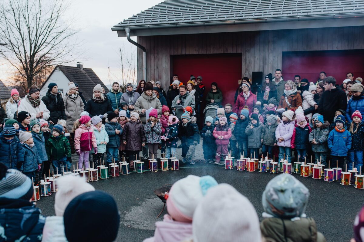 Am Abend startete das traditionelle St.-Martinsfest mit Martinsumzug. Auftakt war eine Andacht am Mitarbeiterparkplatz der Kita, bei der die Kinder, um das Martinsfeuer versammelt, im Mittelpunkt standen. Die Laternen der Kinder bildeten einen Kreis um das Feuer, und die Kinder rundeten dieses Bild ab.