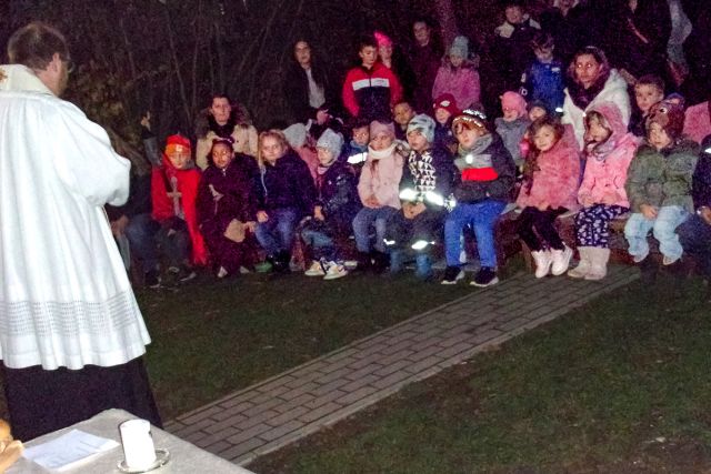 Zuvor feierten die Kindergartenkinder zusammen mit Eltern und den Mitarbeitern im Garten des Kindergartens St. Josef eine Andacht, zelebriert von Pfarrer Daniel Fenk. Mit einem Martinsspiel wurde die Geschichte um den heiligen Mann erzählt, dazu stimmten Kinder und Erwachsene die entsprechenden Lieder an.