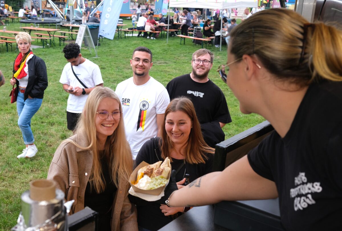 Die Anbieter setzten auf die kulinarischen Klassiker: Pulled Pork über Philly Cheese Steak bis zum Kaiserschmarrn. “Insektenburger sind diesmal nicht dabei”, versprach Miguel Ortega, der Geschäftsführer der ausrichtenden Funtastic GmbH. Er stellte nicht nur die kulinarische Auswahl zusammen, sondern kümmerte sich auch um das Rahmenprogramm mit Trampolinspringen, Hüpfburg und Kasperltheater für die Kinder und Live-Musik für die Erwachsenen.