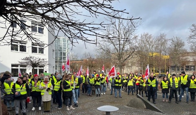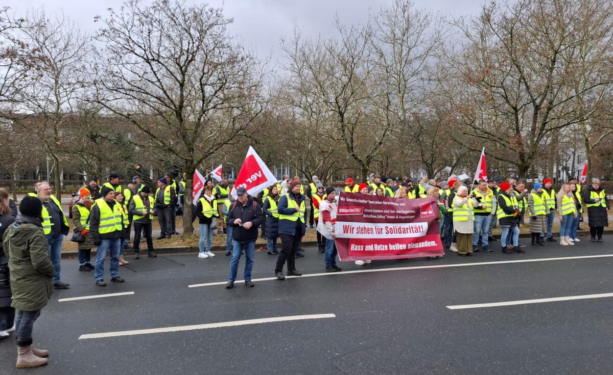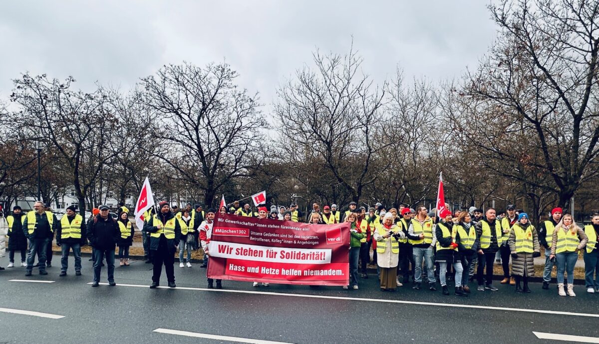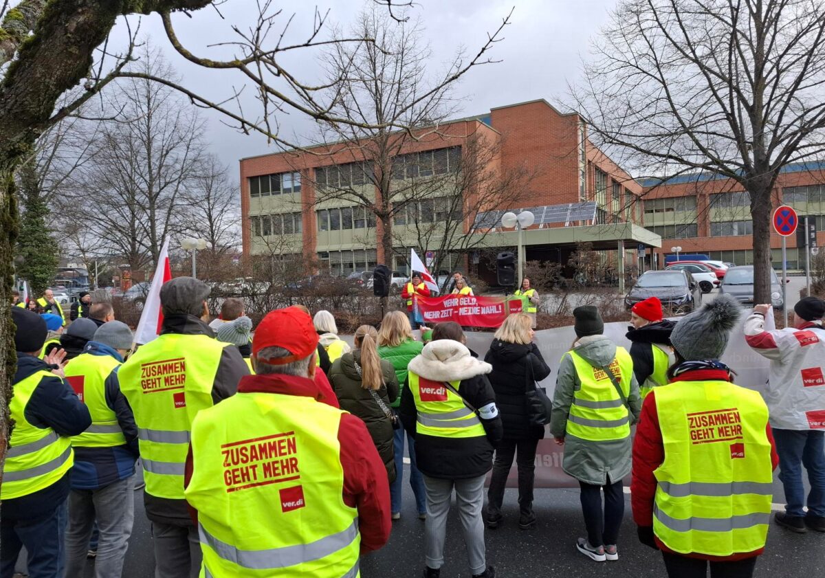 In Regensburg am 28. Februar 2025 wird der Warnstreik im öffentlichen Dienst in Weiden weiter ausgeweitet. Die Streikaktionen zeichnen sich durch eine hohe Beteiligung aus. Eine besondere Gedenkminute für die Opfer eines Anschlags auf einen ver.di-Demozug in München findet zu Beginn der Kundgebung statt.